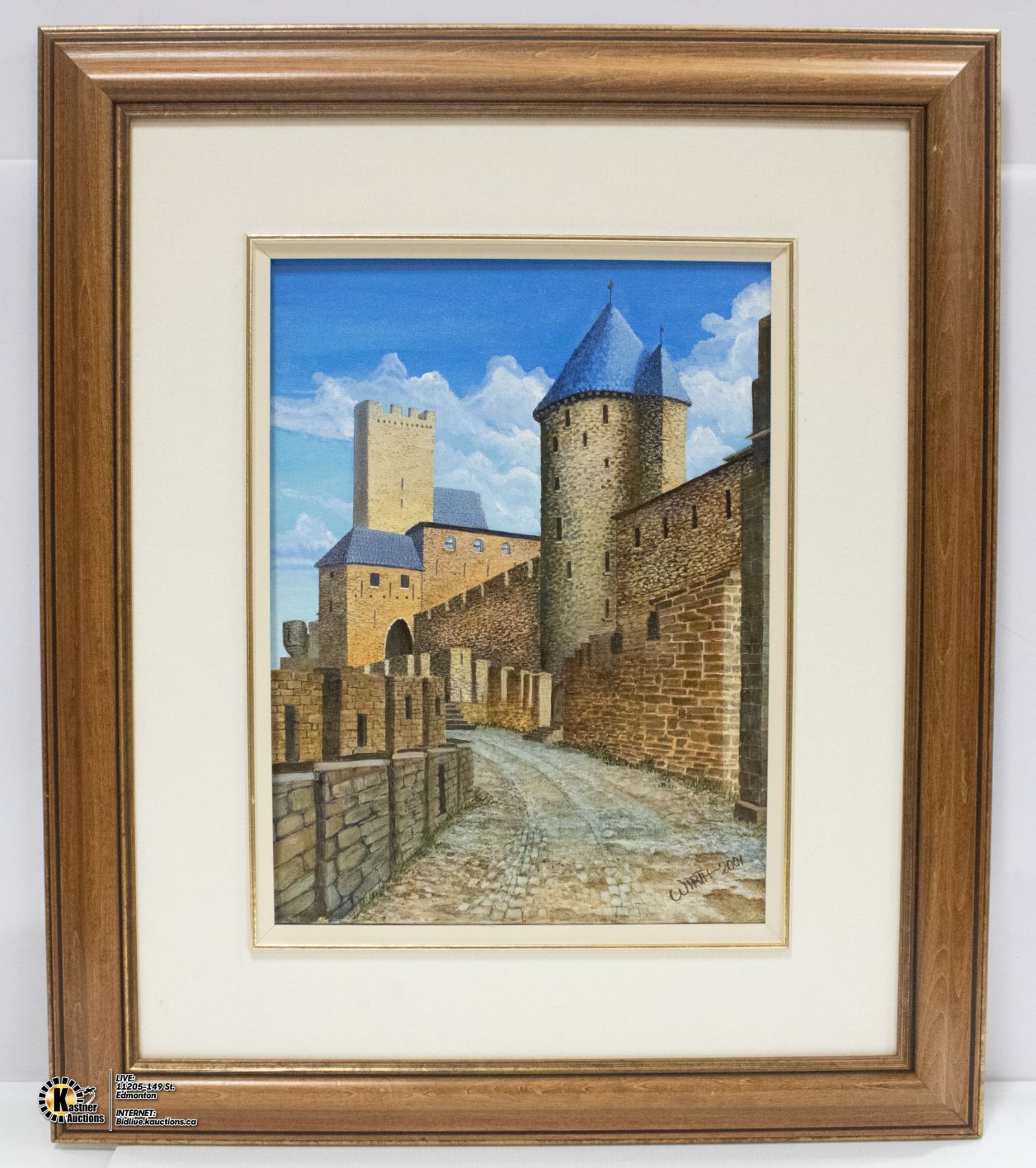 FRAMED ORIGINAL OIL PAINTING OF CARCASONNE, FRANCE. ARTIST "WIRTH". AND . "22" X "26". SIGNED.