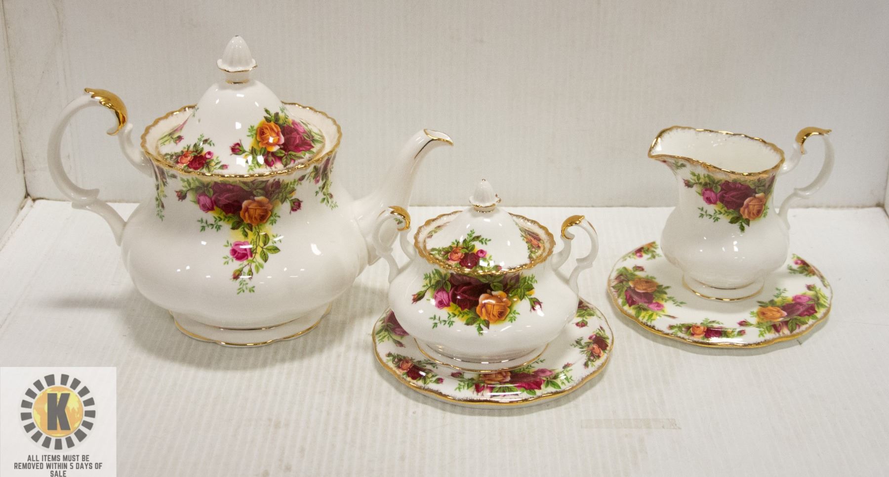 ENGLAND TEAPOT, CREAMER, SUGAR BOWL WITH LIDALL ITEMS MUST BE REMOVED WITHIN 5 DAYS OF SALE