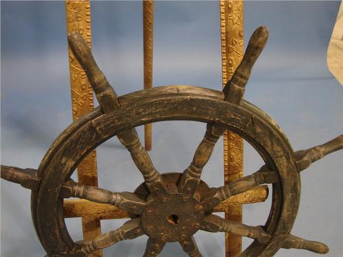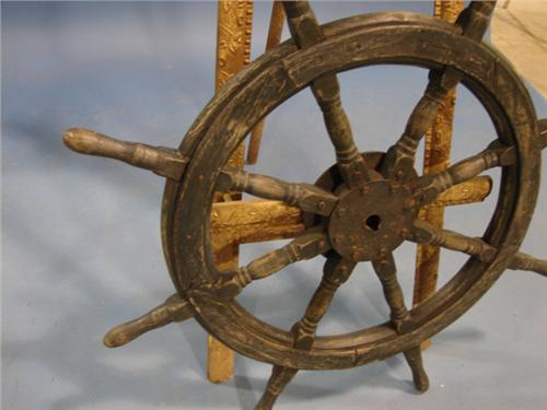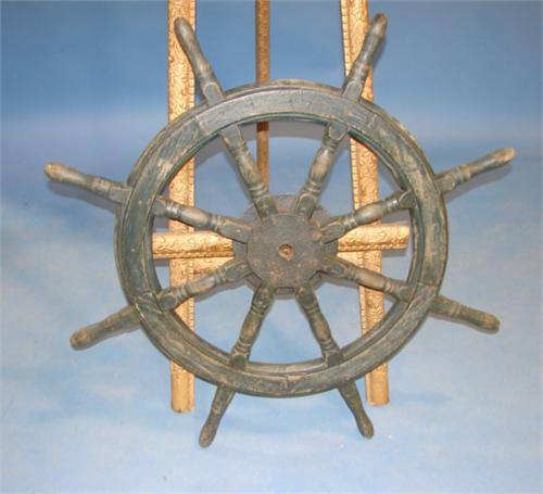 ORIGINAL PAINTED GREEN 8-HANDLE SHIP’S WHEEL. Shows some loss to paint. 41” Dia.