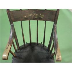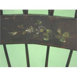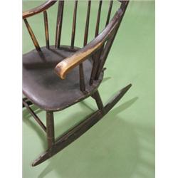 ORIGINAL PAINTED WINDSOR ROCKER. Original black paint with painted floral decorations and red pinstripes. Paint loss to arms. Sleigh rockers on bottom. 15" H to top of seat, 44" H to top of back, 20" W