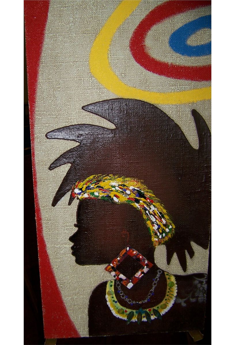 ORIGINAL PAINTING ON CANVAS, OIL & MIXED MEDIA " AFRICAN PRINCESS" 40T X 20W