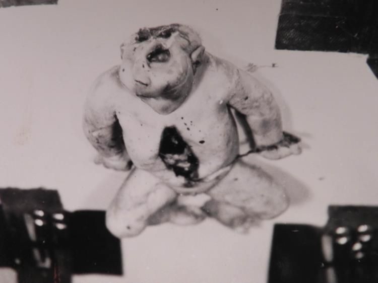 ORIGINAL PHOTO OF NAZI DR. MENGELE EXPERIMENTATION ON INFANT-EXTREMELY RARE PIC * HORRIBLE REMINDER OF THE "DOCTOR OF DEATHS" EXPERIMENTATION-SURROUNDED BY SURGICAL INSTRUMENTS- 6 1/2" X 4 1/4"---NUMBERED ON REVERSE