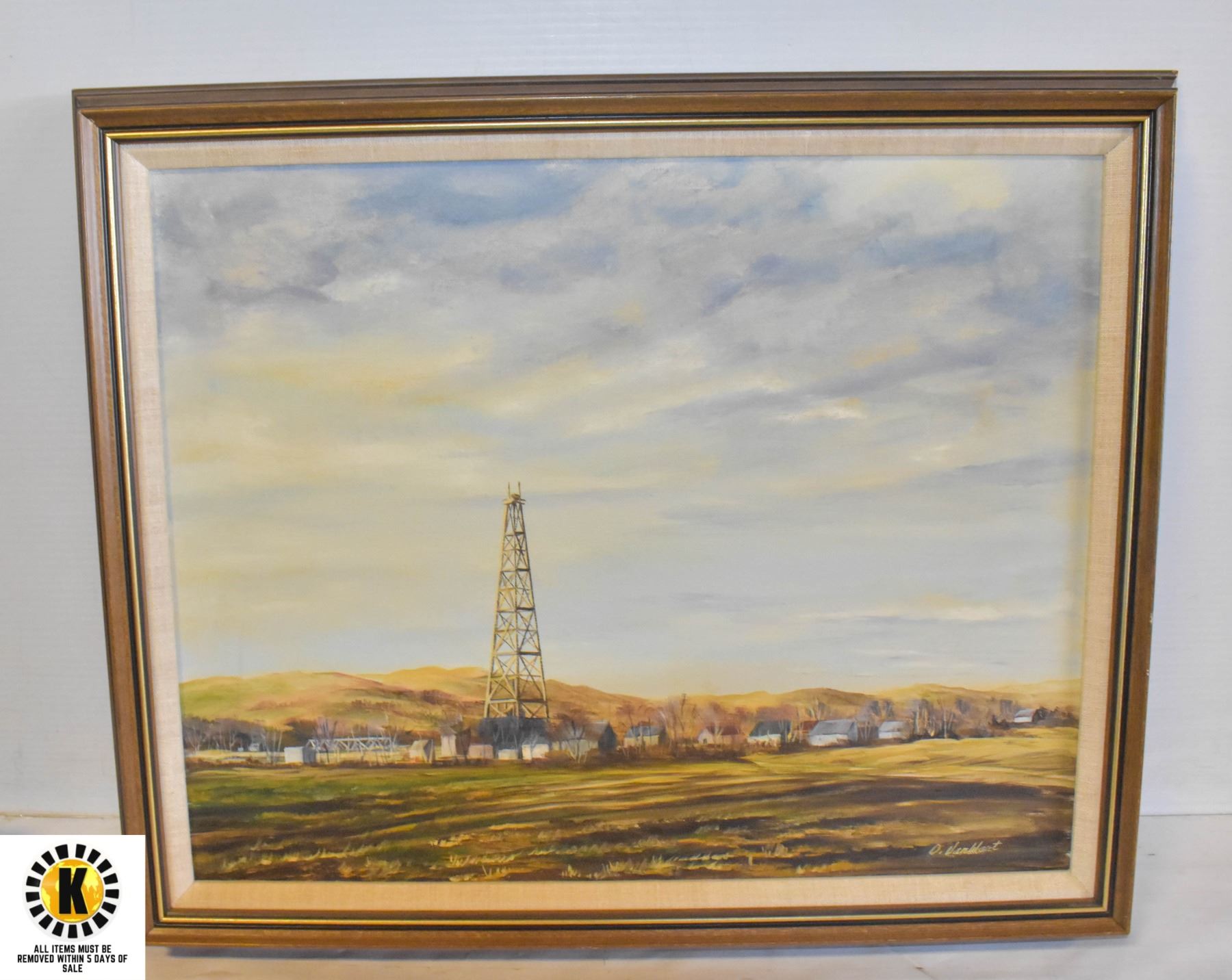 ARTIST OLLIE VAN WART. CANADIAN ART, OIL DERRICK. SIGNED PROFESSIONALLY FRAMED LAFLAMME GALLERIES CALGARY