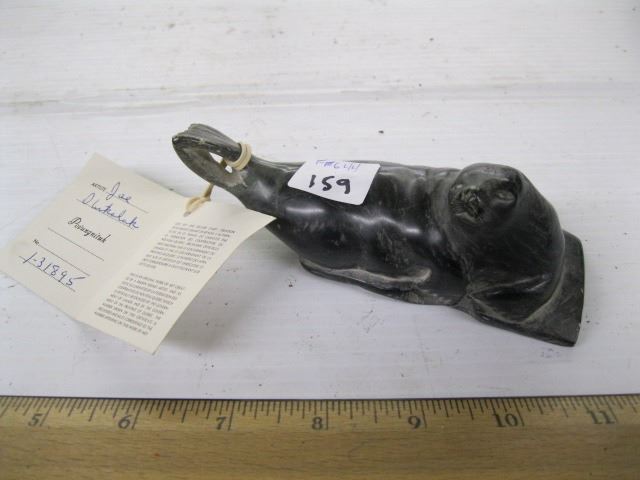 ORIGINAL SOAPSTONE CARVING WITH TAG, SIGNED BY ARTIST JOE ITORALA & NUMBERED