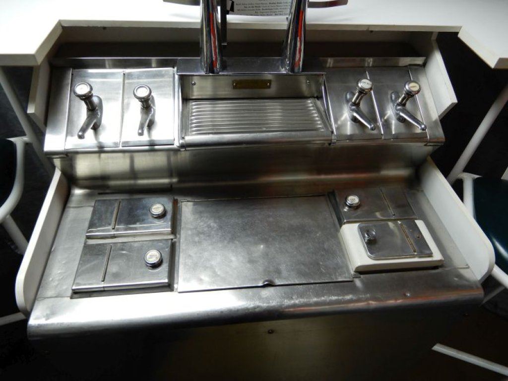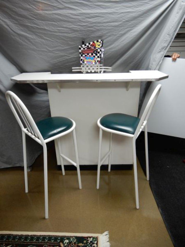 ORIGINAL SODA SHOP COUNTER & 2 CHAIRS QUEEN FOUNTAIN MFG. CO. TORONTO- ON.-  58 1/2" X  32" X 44 1/2" LOCATION: SODA SHOP