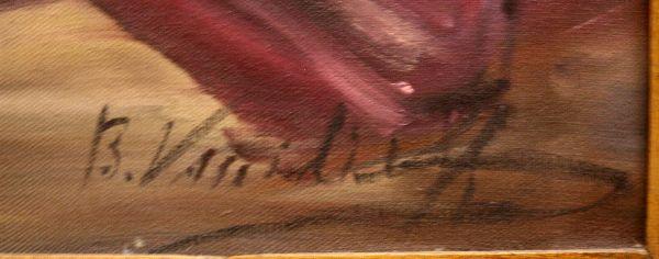 31x37 inches framed. Vibrant oil on canvas still life of flowers in a vase by artist Barbara Vassilieff (Russian/American, 1901-2000). Signed "B. Vassilieff" in lower right. Well framed and in very good condition.