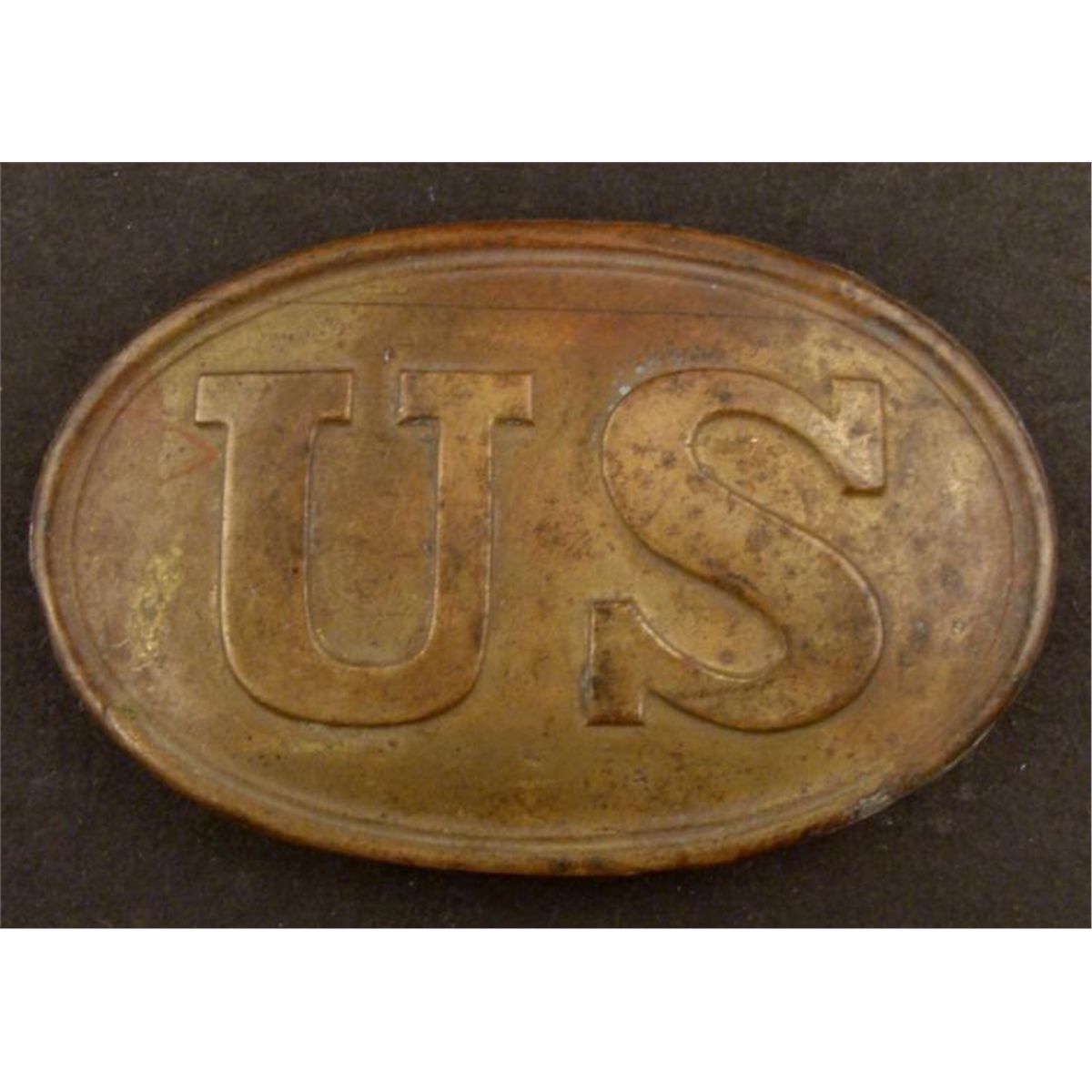 OFFERED HERE IS AN ORIGINAL UNION CIVIL WAR "US" BUCKLE, WITH A BRASS-LEAD FILLED BACK. THIS IS A NICE AGE PATINA. * THE BUCKLE IS APPROXIMATELY 2 1/8" X 3 3/4" AND IS IN GOOD CONDITION. THERE IS A 3 PRONG CATCHES ON THE REVERSE. THIS IS A GREAT, HARD TO COME BY CIVIL WAR BUCKLE! *