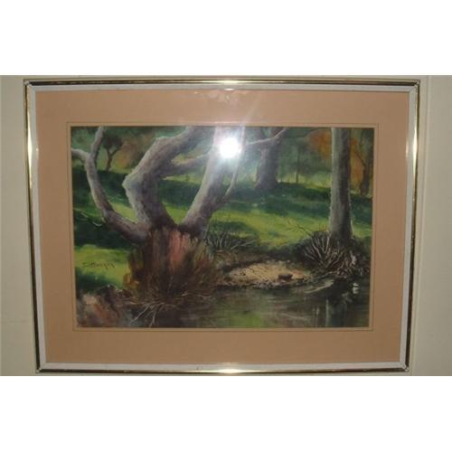 COLORFUL ONE OF A KIND FOREST SCENE ORIGINAL WATERCOLOR.</em></td>