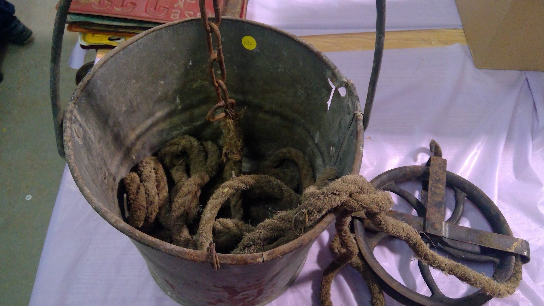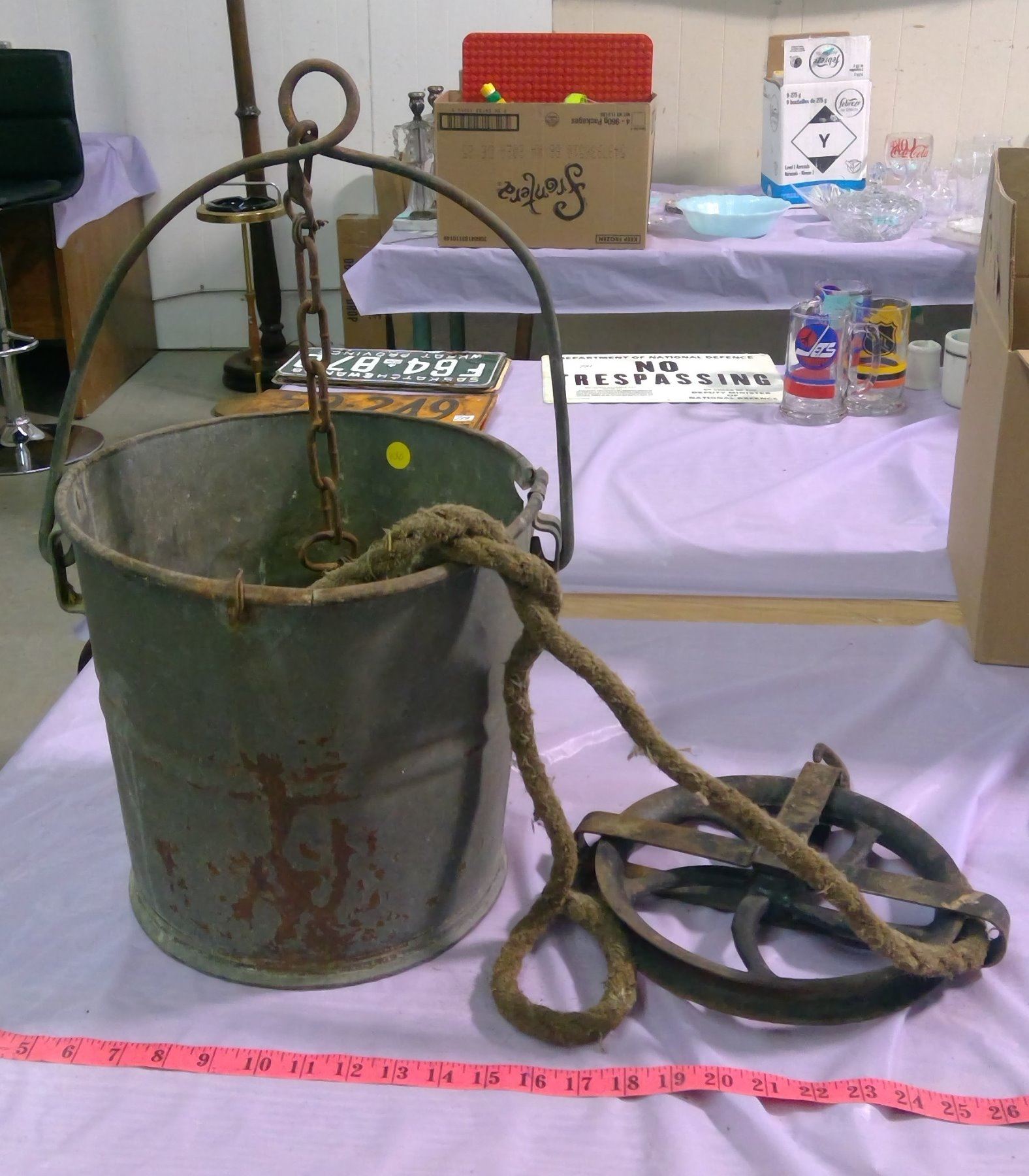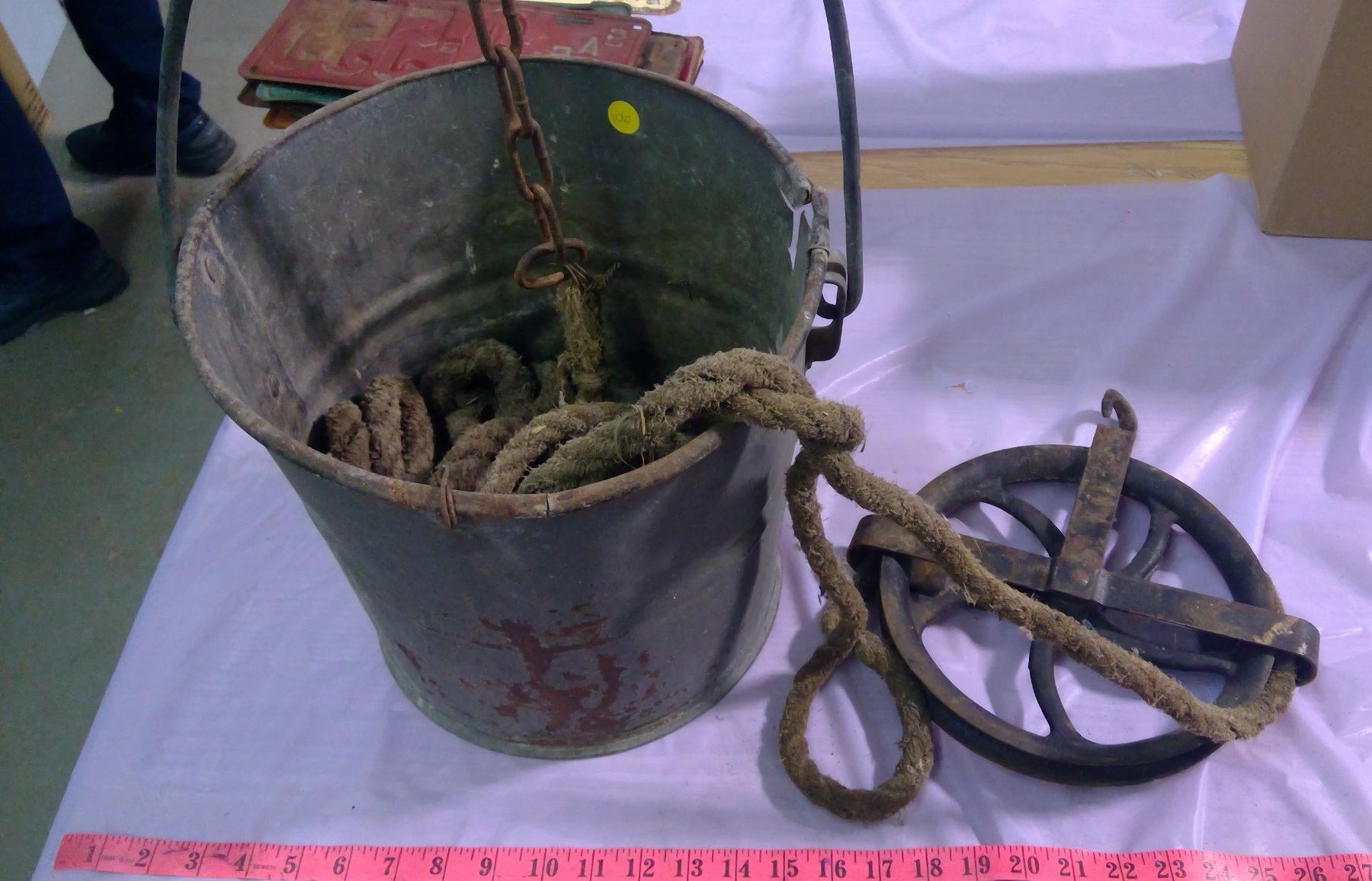 ORIGINAL WELL PAIL AND PULLEY - 5" WHEEL & 7" WHEEL