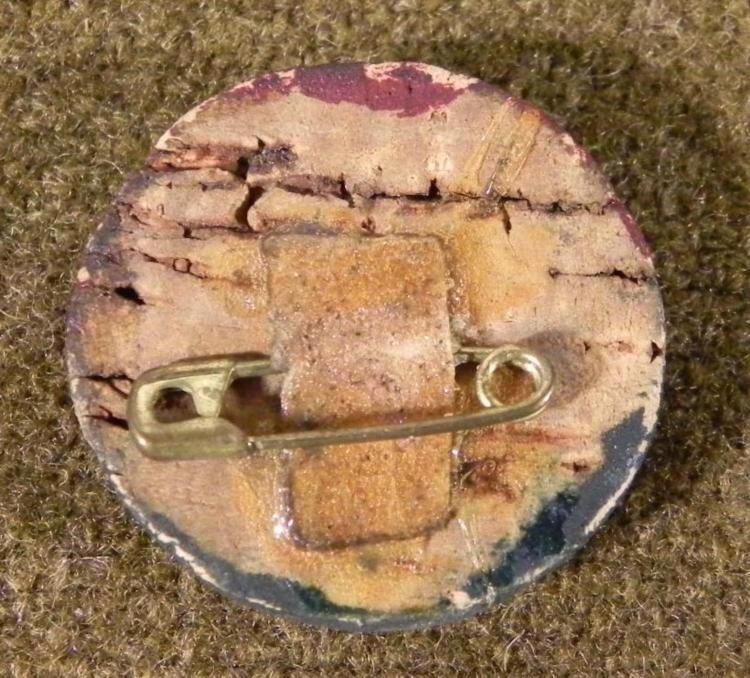 ORIGINAL WWI "V" FOR VICTORY HAND MADE PIN-WOOD WITH SAFETY PIN BACK-GREAT PIECE * DIAMETER 1 1/4"--PAINTED RED-WHITE BLUE *