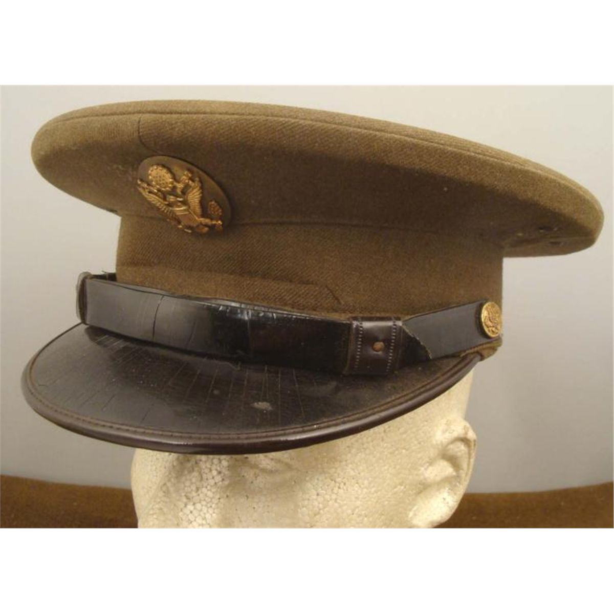 THIS IS AN ORIGINAL WWII AAF VISOR CAP. THE INSIDE SWEAT DIAMOND IS MARKED "BROOKS, CALIF, UNIFORM DEPT". IT IS A SIZE MEDIUM WITH A COUPLE OF MOTH NIPS TO THE TOP WOOL. * * * *
