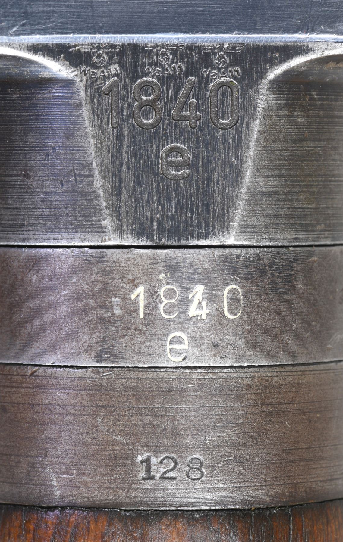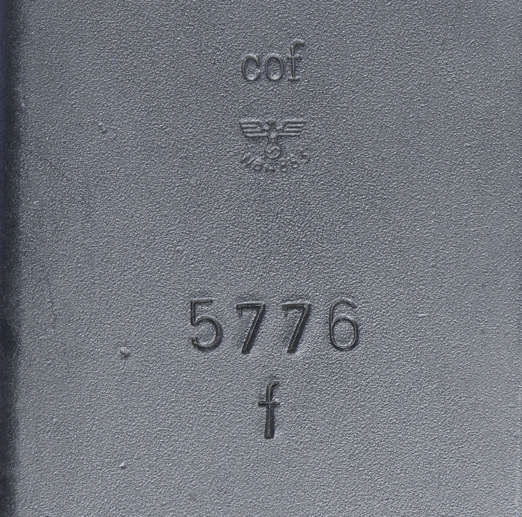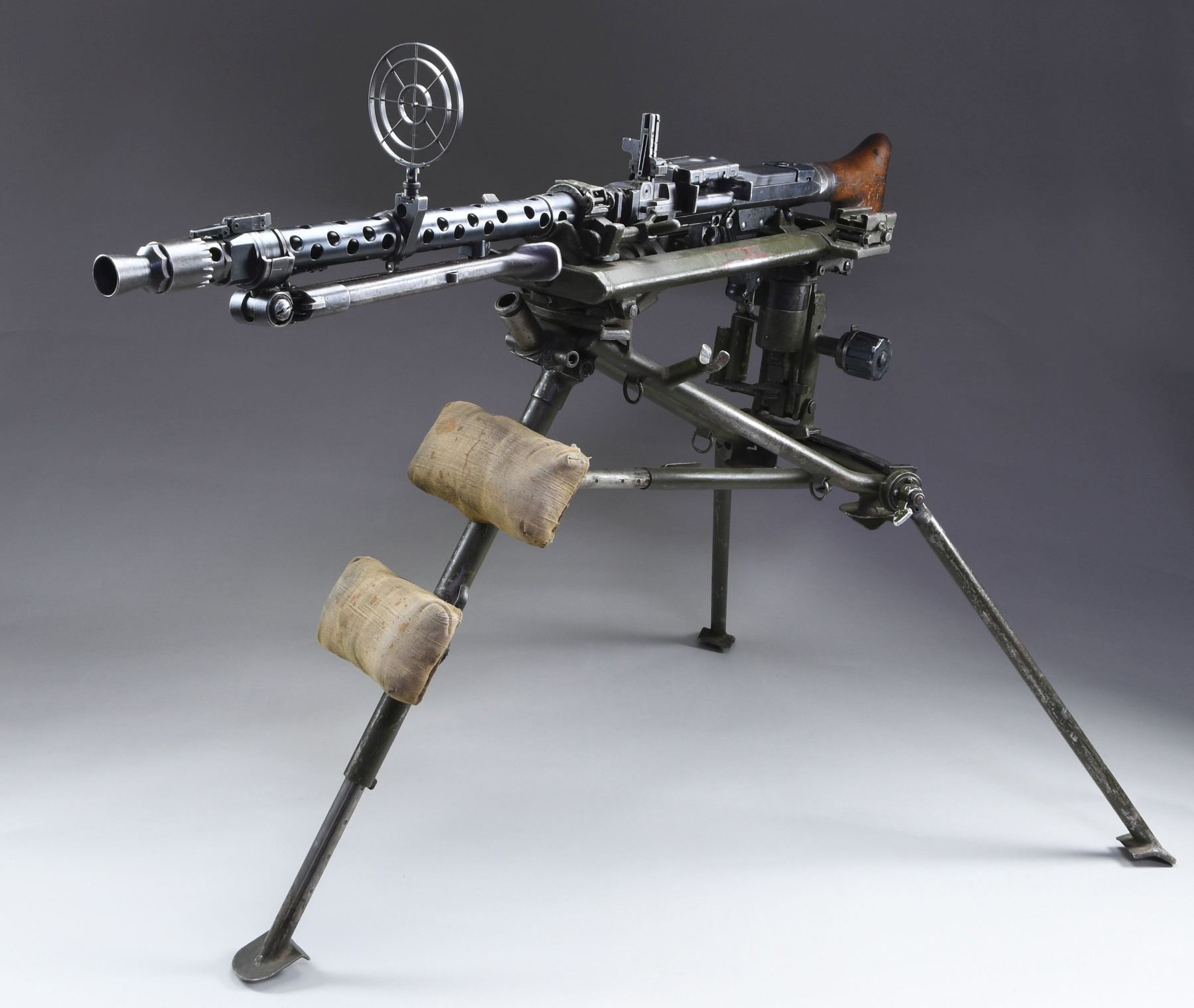 GUN. PRE 86 DEALER SAMPLE (KEEPER). Cal. 8mm. S# 1840E. Bbl. 24". 1942 dated "cra" marked German MG34. The MG34 is one of the most recognizable of the German WWII era MG's. Designed by Mauser on order of the Waffenamt, it was manufactured in the early days where German tolerances & quality were front & center, over the later guns all nations involved would be forced to manufacture which placed the focus on quick & inexpensive. The MG34 can easily be described as functional artwork. 109 Different parts were manufactured from bar stock, obviously before the pressed & stamped manufacturing processes would eventually take over. Before WWII was over, almost 500,000 MG34's were produced by 5 different firms. The trigger mechanism of the MG34, though complicated in design, was extremely simple for the operator since no external selector was necessary to switch between semiautomatic & fully automatic fire. The elongated trigger could simply be depressed at the top for semiautomatic & squeezed at the bottom for full automatic fire. With an overall length of almost 48" & a sight radius of 21", neither accuracy nor the ability to lay down an enormous amount of lead would pose to be a problem. Front sight is a folding blade, rear sight is a graduated notch from 200 to 2000 meters. Visible Waffenamt markings in several locations. Heavily knurled cocking handle. Ventilated barrel shroud with AA sight base doubling as front sling swivel, currently sporting AA "spider web" front sight. Integral folding bipod locks correctly in retracted position. Correct barrel booster locks into position with a spring loaded mechanism built into the front sight mount. Matching numbers "1840e" on several visible parts such as receiver, stock & barrel jacket. Several German Party symbols scattered throughout as typical of period German manufacture. Lafette tripod is painted dark green and appears to be functional in all aspects. Trigger mechanism is smooth, as is the traverse & elevation mechanism. This tripod still retains the frnt pads & coverings. UNATTACHED ACCESSORIES: Lafette Tripod, 5 lengths of non-desintegrating belt links. CONDITION: finish on all external metal parts is a little nicer than par with the majority of these era guns. Coverage is complete with some signs of handling and use as expected. Several of the parts are original German arsenal replacements, bearing several different numbers. Numerous Waffenamts and factory codes, in several locations. Hardwood stock presents as usual, w/ scattered light impressions and a small crack on left side running rearward from the steel collar, however it doesn't appear to have any structural significance. Black pistol grips are in nice condition demonstrating some impressions & a few light chips under close inspection. The fire control mechanism appears to function correctly when cycled by hand. Bright shiny bore w/ strong rifling. NATIONAL FIREARMS ACT MG REQUIRING BATF TRANSFER BEFORE TAKING POSSESSION. PRE-86 DEALER SAMPLE (KEEPER). MUST BE AN FFL W/ SOT IN ORDER TO TAKE POSESSION. PROVENANCE: From the Lifelong Collection of Brian Linde. (03-1840/JZ). CLASS III. $8,000-14,000.