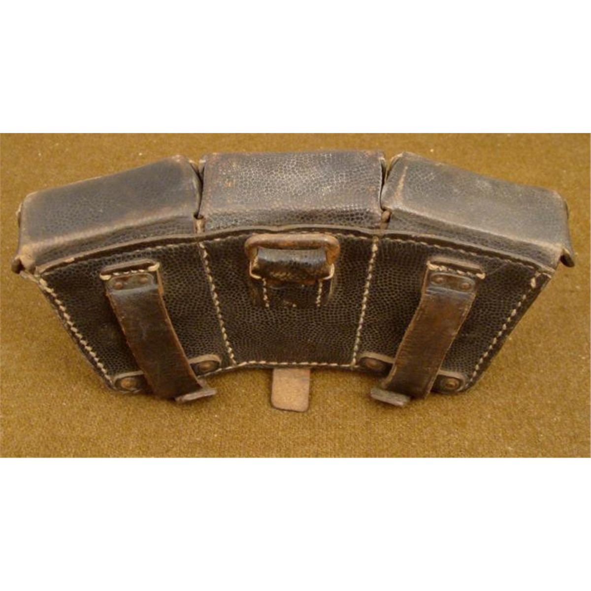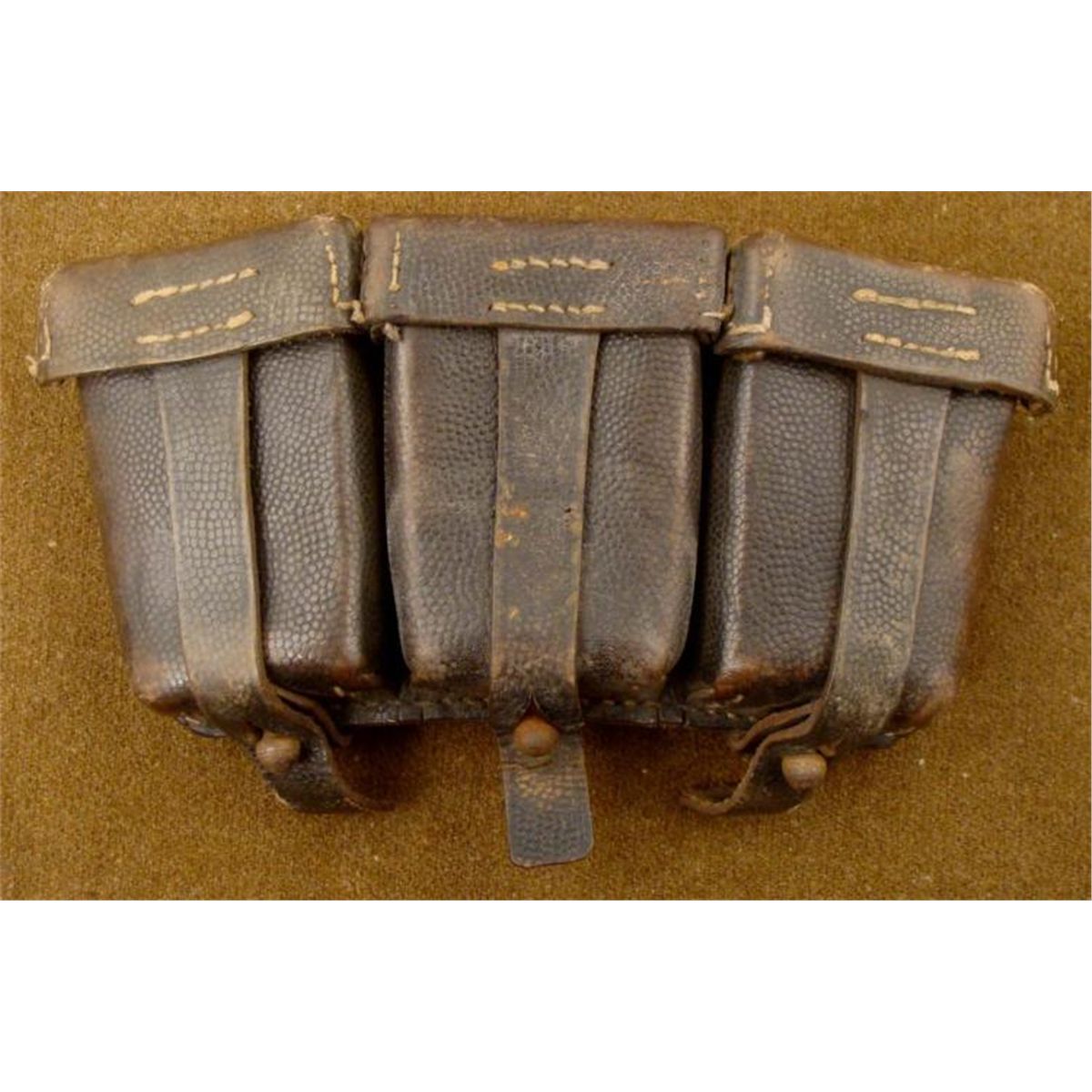 OFFERED HERE IS AN ORIGINAL WWII NAZI 3 POCKET AMMO POUCH. IT IS MADE OUT OF PEBBLED LEATHER, HAS A D RING AND STRAPS, AND IS MARKED "RE NR 1094940006." * *