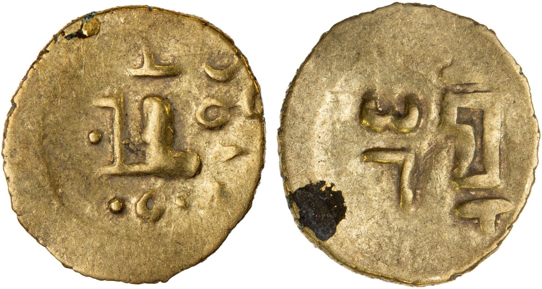 ORISSA: Anonymous, 12th/13th century, AV fanam (0.48g), year 28, Tripathy-1, sa + date / couchant bull, circle & 2 crescents above, goad behind, circle & dots before, VF-XF, R. Odisha, formerly Orissa, is a state located in Eastern India. The ancient kingdom of Kalinga, which was invaded by the Mauryan Emperor Ashoka in 261 BCE resulting in the Kalinga War, coincides with the borders of modern-day Odisha. The Somavamshi (or Keshari) dynasty ruled parts of present-day Odisha in eastern India between the 9th and the 12th centuries. Their capitals included Yayatinagara (modern Binka) and Abhinava-Yayatinagara (modern Jajpur).