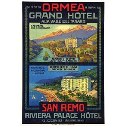 ADVERTISING TOURISM POSTER - ORMEA - SANREMO, HOTELS
