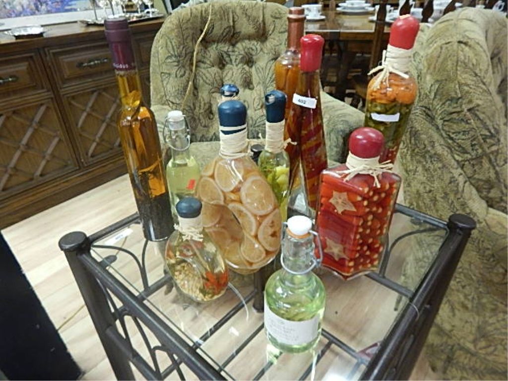 ORNAMENTAL BOTTLES WITH HERBS, SPICES AND VEGIES - 11 PC TOTAL