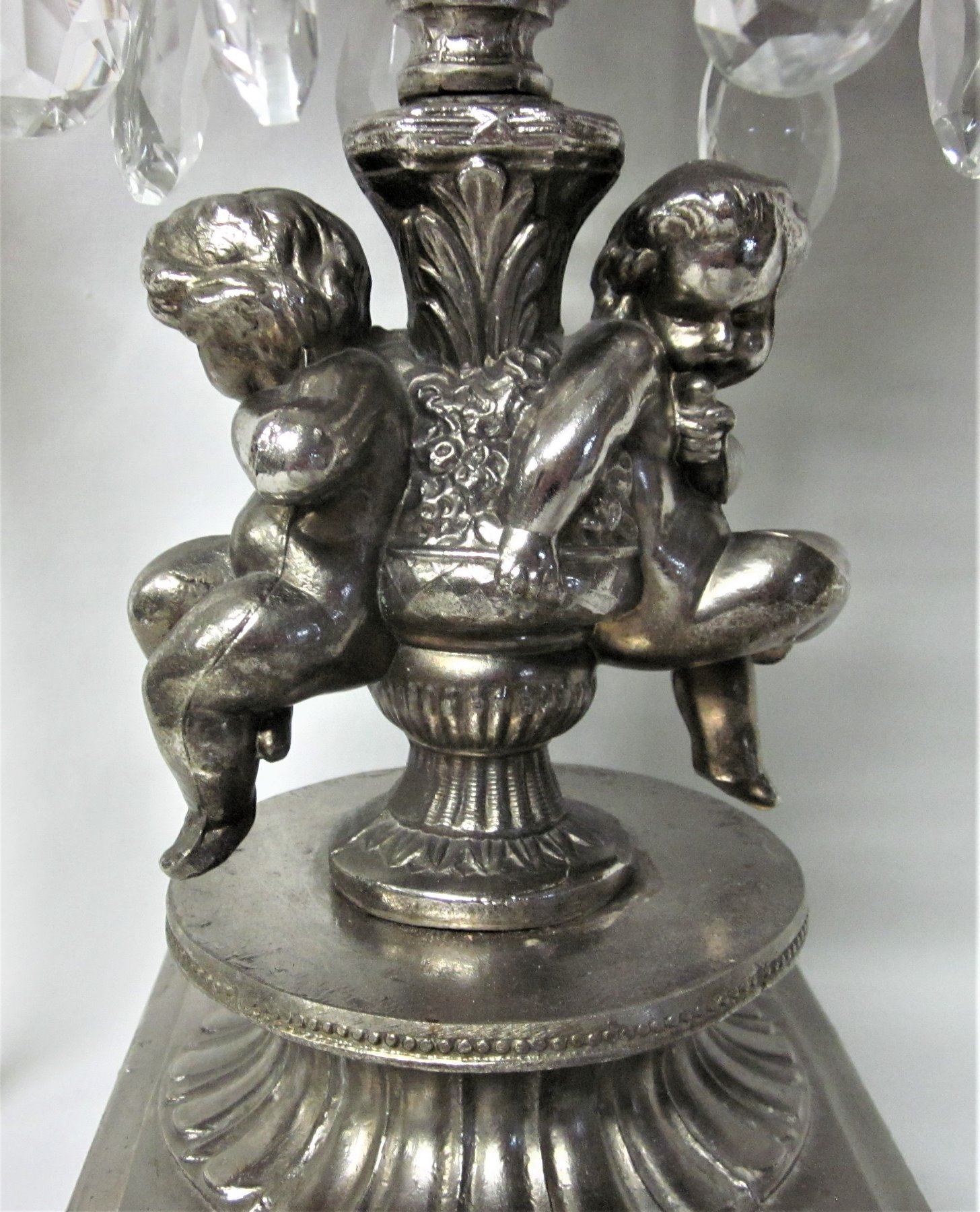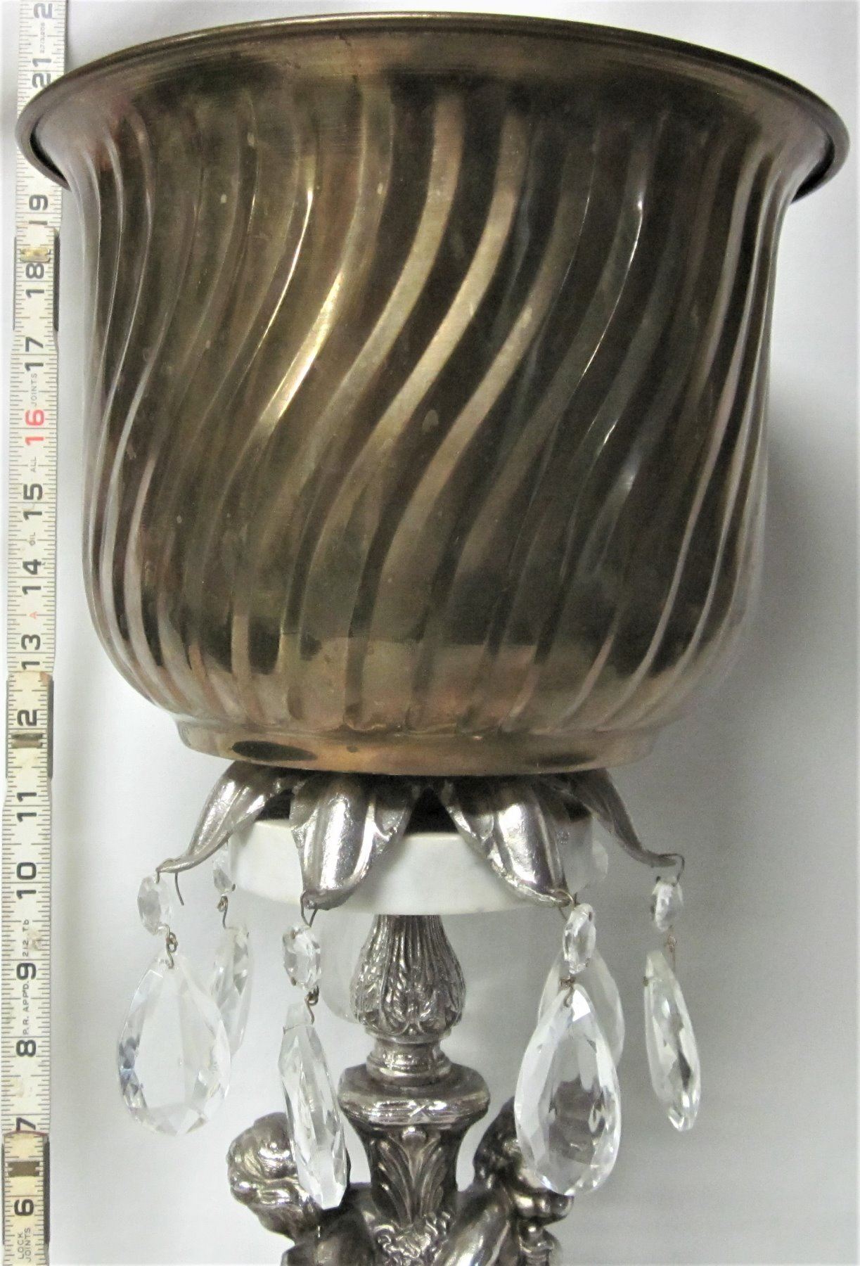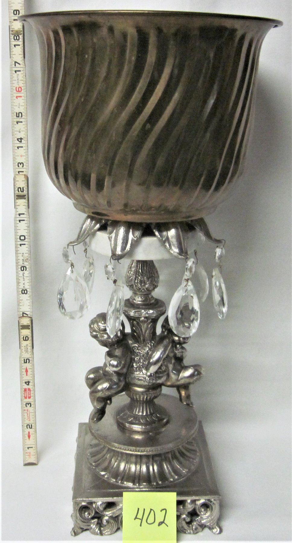 ORNATE BRASS/MARBLE FLOWER POT WITH DANGLING CRYSTALS