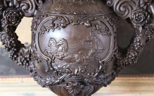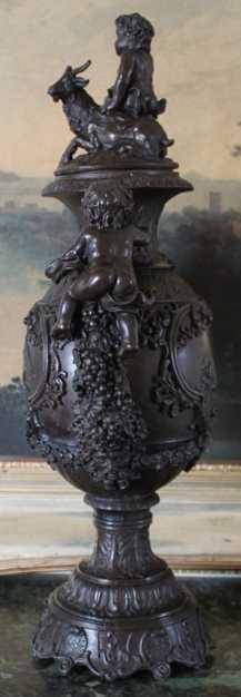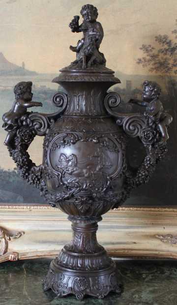 ORNATE BRONZE URN - MUSEUM BROWN PATINA - VERY WELL MAINTAINED - MINT - 21HX6.5WX13D