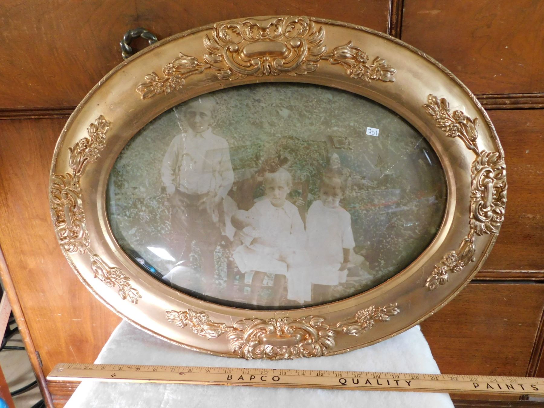ORNATE BUBBLE GLASS PICTURE FRAME WITH PHOTO ABOUT 19” X 25 ¾”