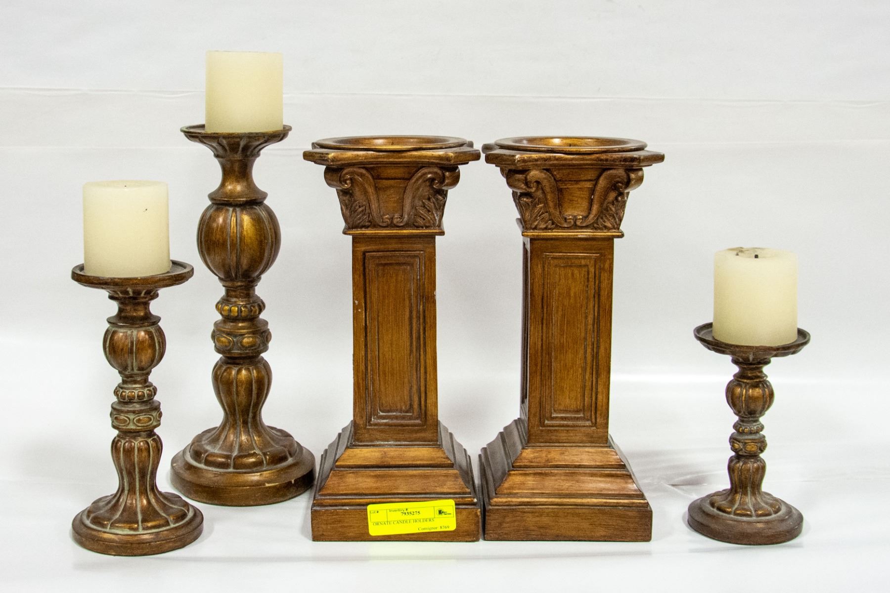 SET OF 3/SET OF 2 ANTIQUE LOOK CANDLE HOLDERS (5) **ALL ITEMS MUST BE REMOVED BY 5PM SATURDAY, FEBRUARY 18TH 2023. ALL REMAINING ITEMS WILL BE SUBJECT TO A $6.00 PER DAY STORAGE CHARGE. ANY ITEMS REMAINING AFTER MONDAY, MARCH 6TH, 2023 WILL BE CONSIDERED FORFEITED. NO REFUNDS WILL BE ISSUED FOR FORFEITED ITEMS. TO SCHEDULE A PICK UP APPOINTMENT CLICK HERE