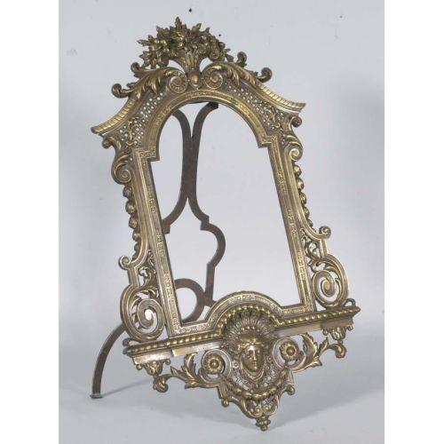 ORNATE CAST BRONZE MIRROR FRAME with easle back, 24" high, late 19th century, CONDITION REPORT: excellent, PACKING AND SHIPPING: Fairfield Auction will provide packing and shipping (excluding insurance) within the Continental U.S. for $40. Buyer is welcome to use any other service or pick-up at the gallery.