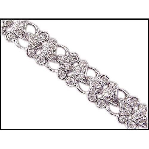 220 sparkling diamonds are set in this 14K solid white gold bracelet. It measures 71/2 inches long, 7mm wide, and weighs a hefty 16.50 grams. Beautiful to say the least. Made to a very high standard of workmanship. Though only priced for $3,000., it can be yours for just a small fraction of that price.