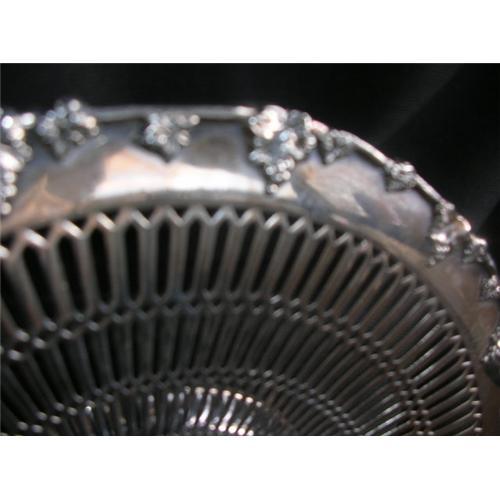 THIS ORNATE PLATE IS IMPRESSED "F.B. ROGERS SILVER CO. TAUNTON MASS. QUADRUPLE 769" AND OTHER THAN SOME SCRATCHES IS IN GOOD CONDITION AND IS 10"(26CM) WIDE.