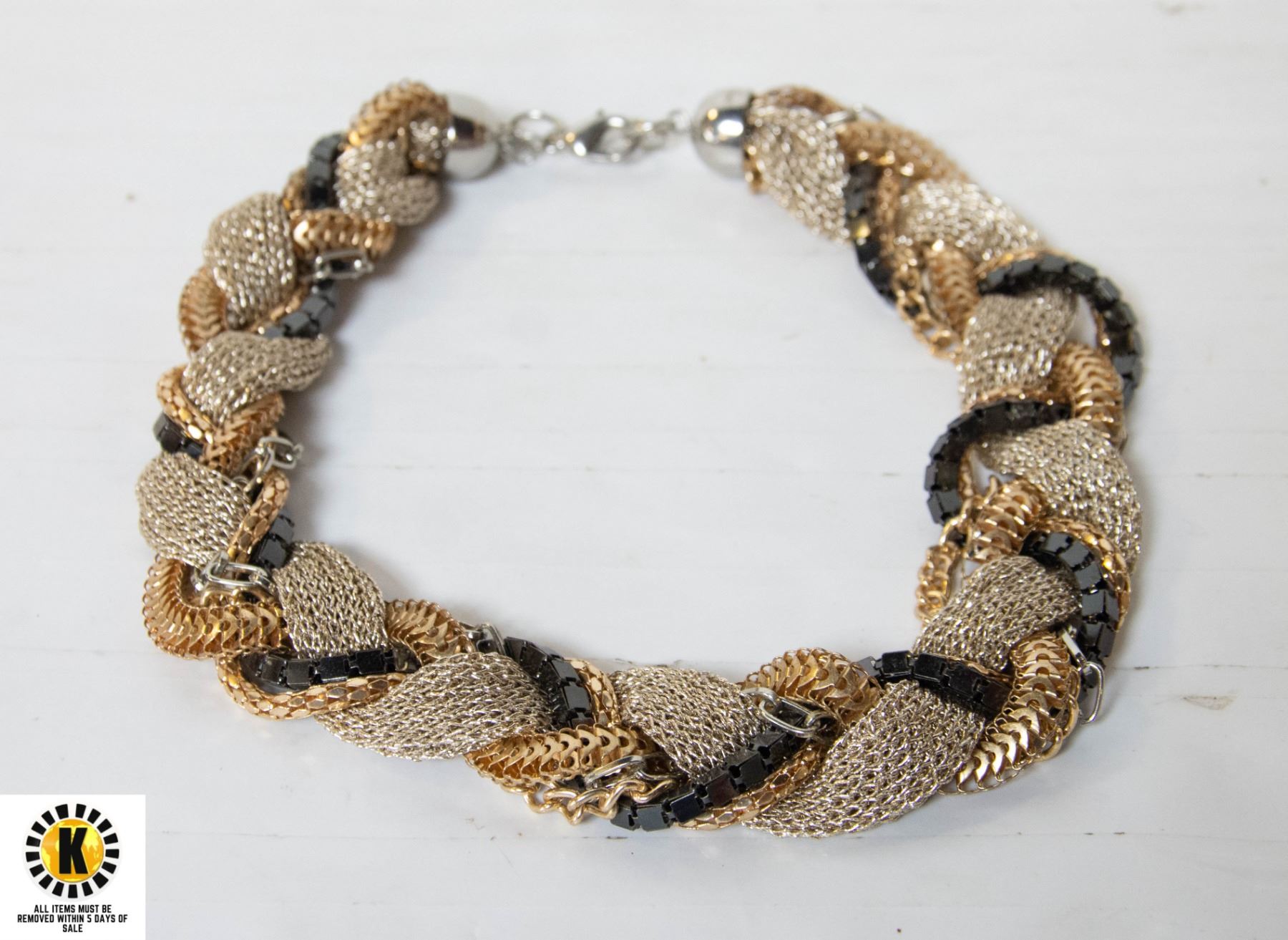ORNATE GOLD AND SILVER TONE BRAID STYLE NECKLACE