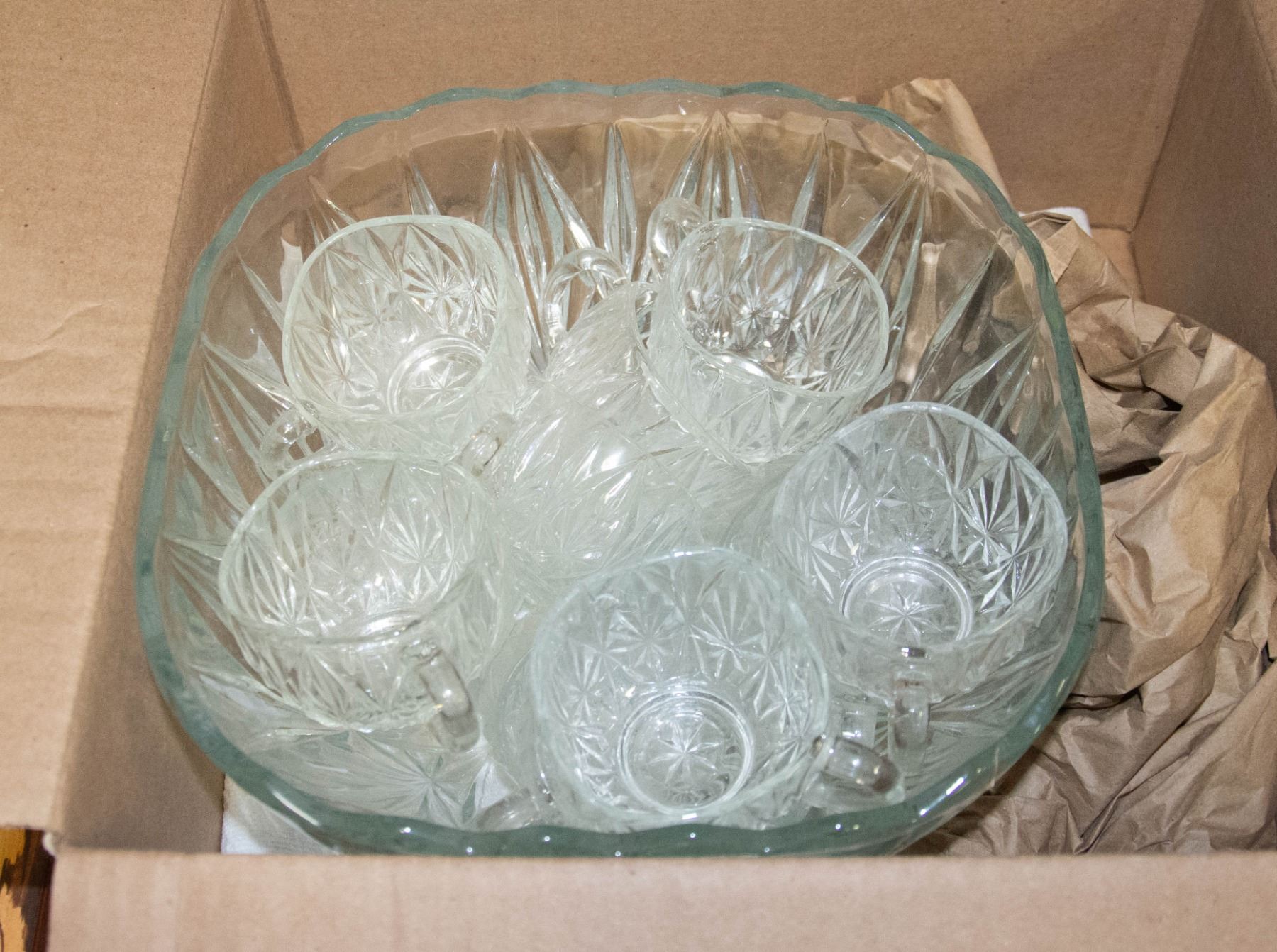 ORNATE PUNCH BOWL AND 12 CUPS