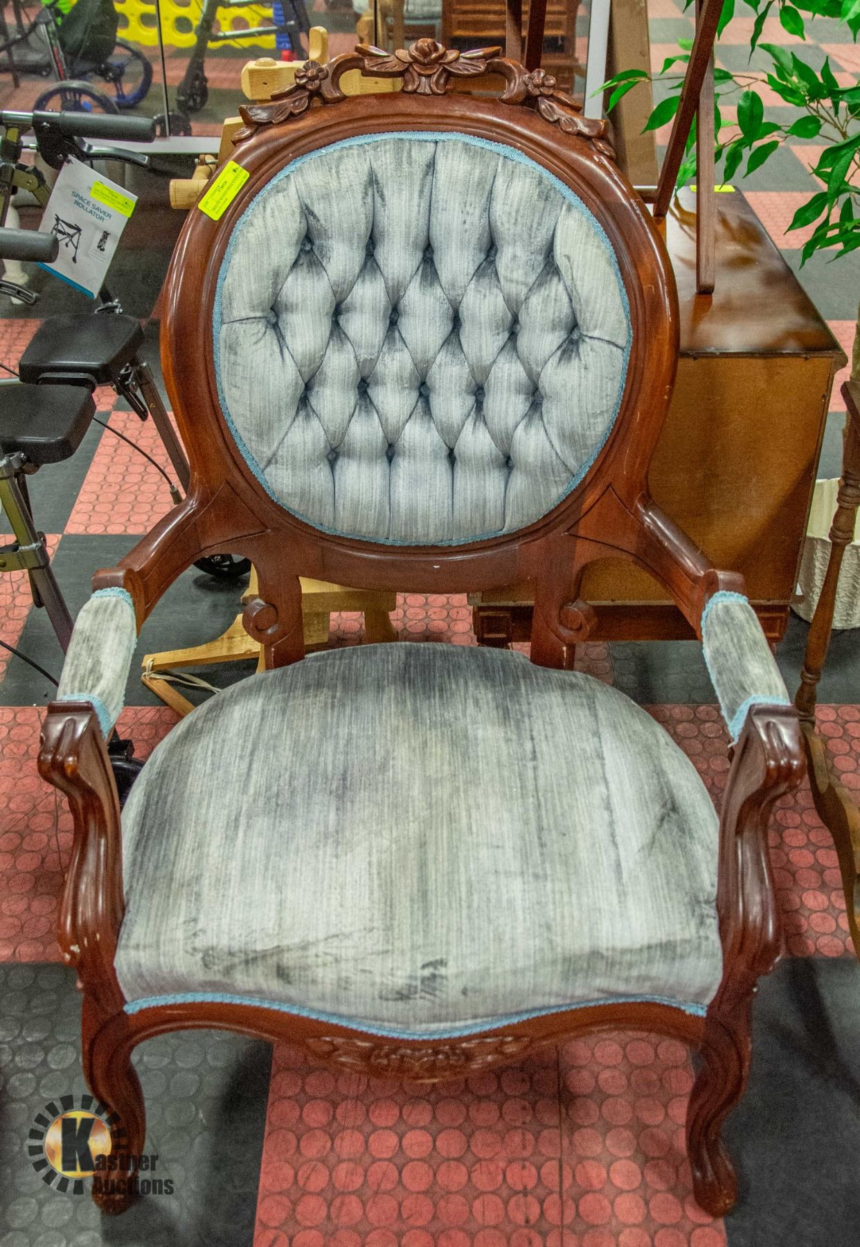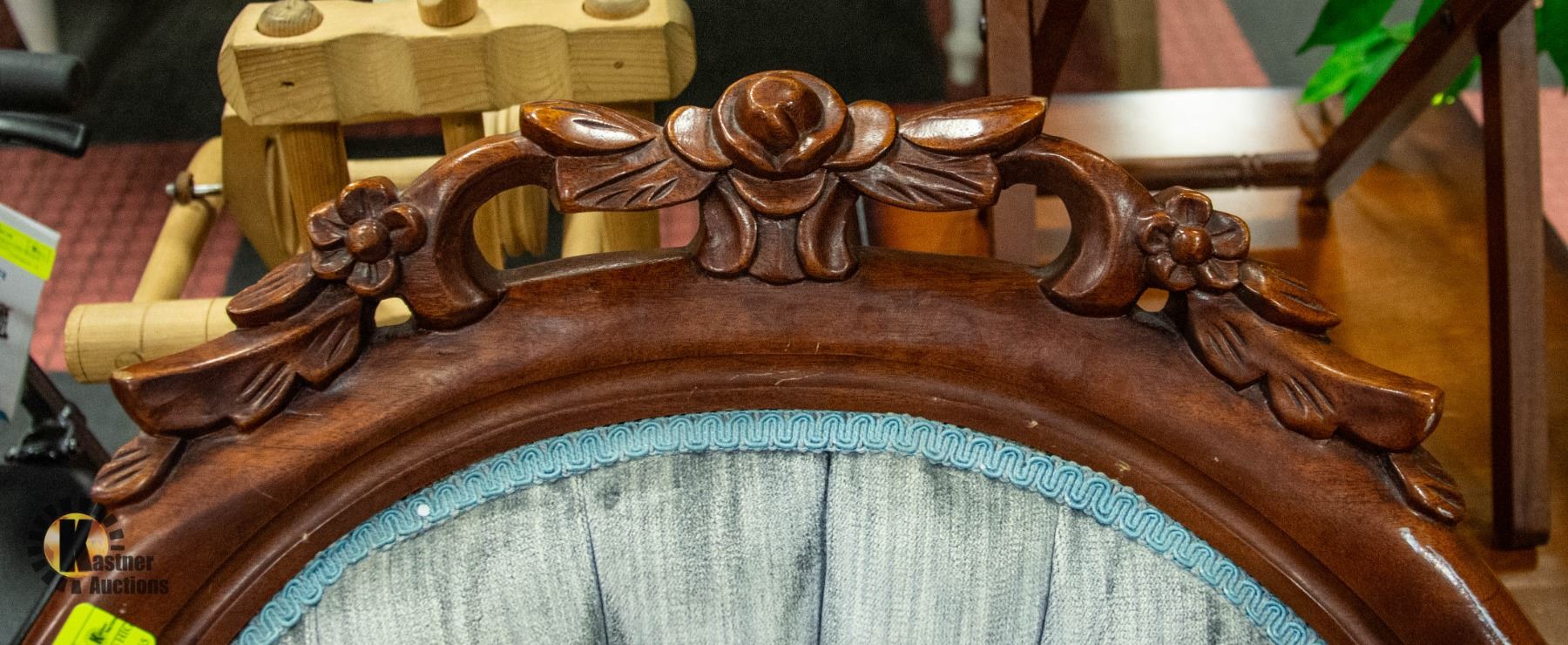 ORNATE WOOD/UPHOLSTERED HIGH BACK CHAIR