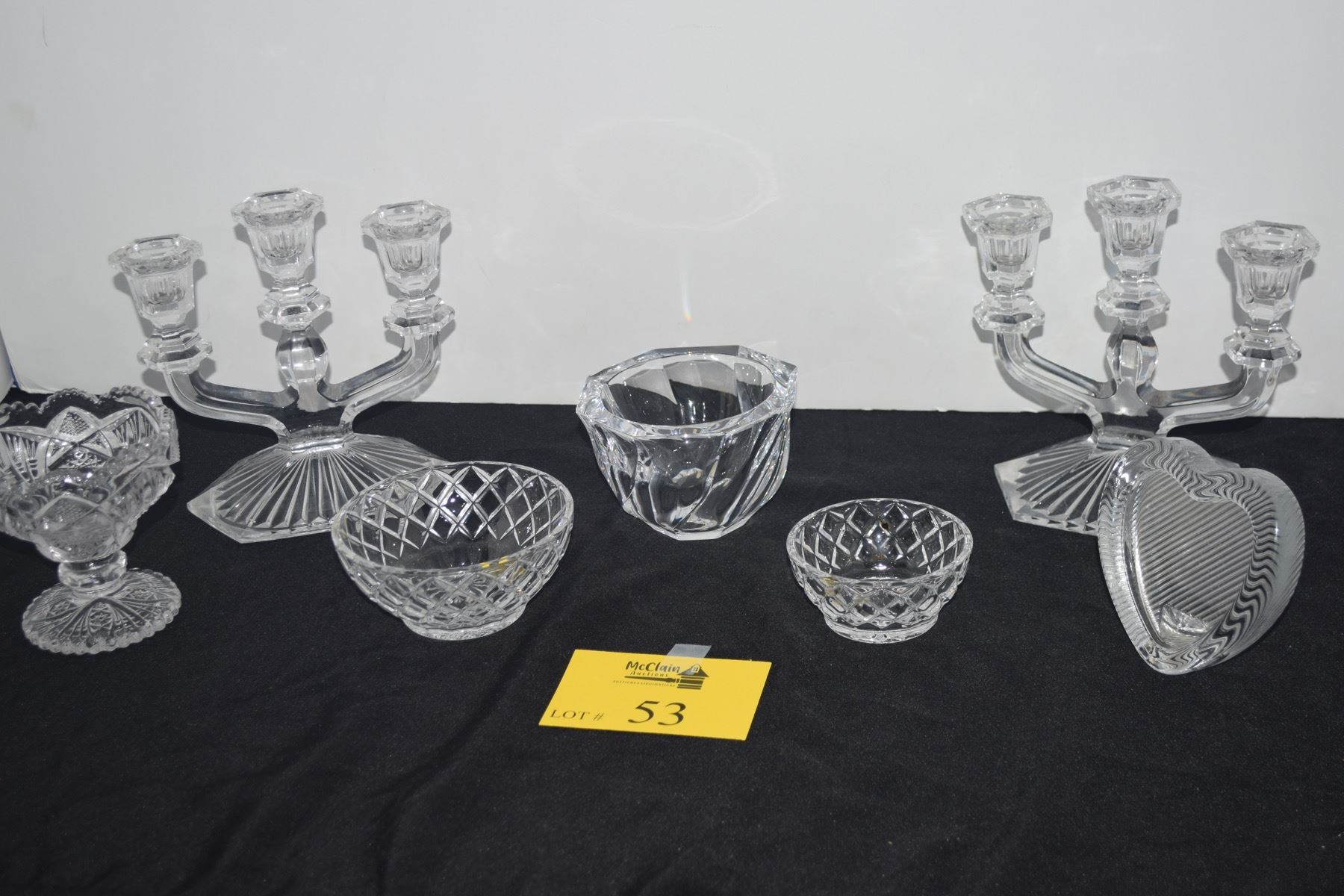 ORROFORS CRYSTAL BOWL, LEAD CRYSTAL CANDELABRAS, BOWLS & HEART PICTURE FRAME (7 PCS)