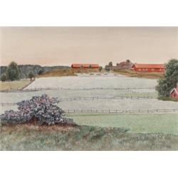 OSKAR BERGMAN 1879-1963 Sommarlandskap från Rö - Uppland Signerad och daterad Oskar Bergman Juli 1938. Akvarell, 25 x 35 cm.