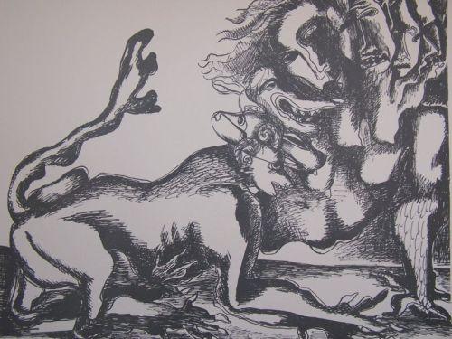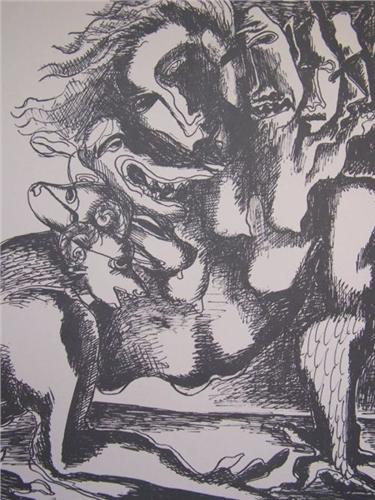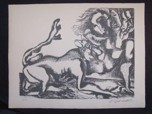 This lithograph was printed in 1960 in a limited edition of only 350 impressions as part of the series "Les Traveaux d'Hercule" (Die Arbeiten des Herakles) that was illustarated with 28 diffirent original lithographs by Zadkine to the myth of Euripides.