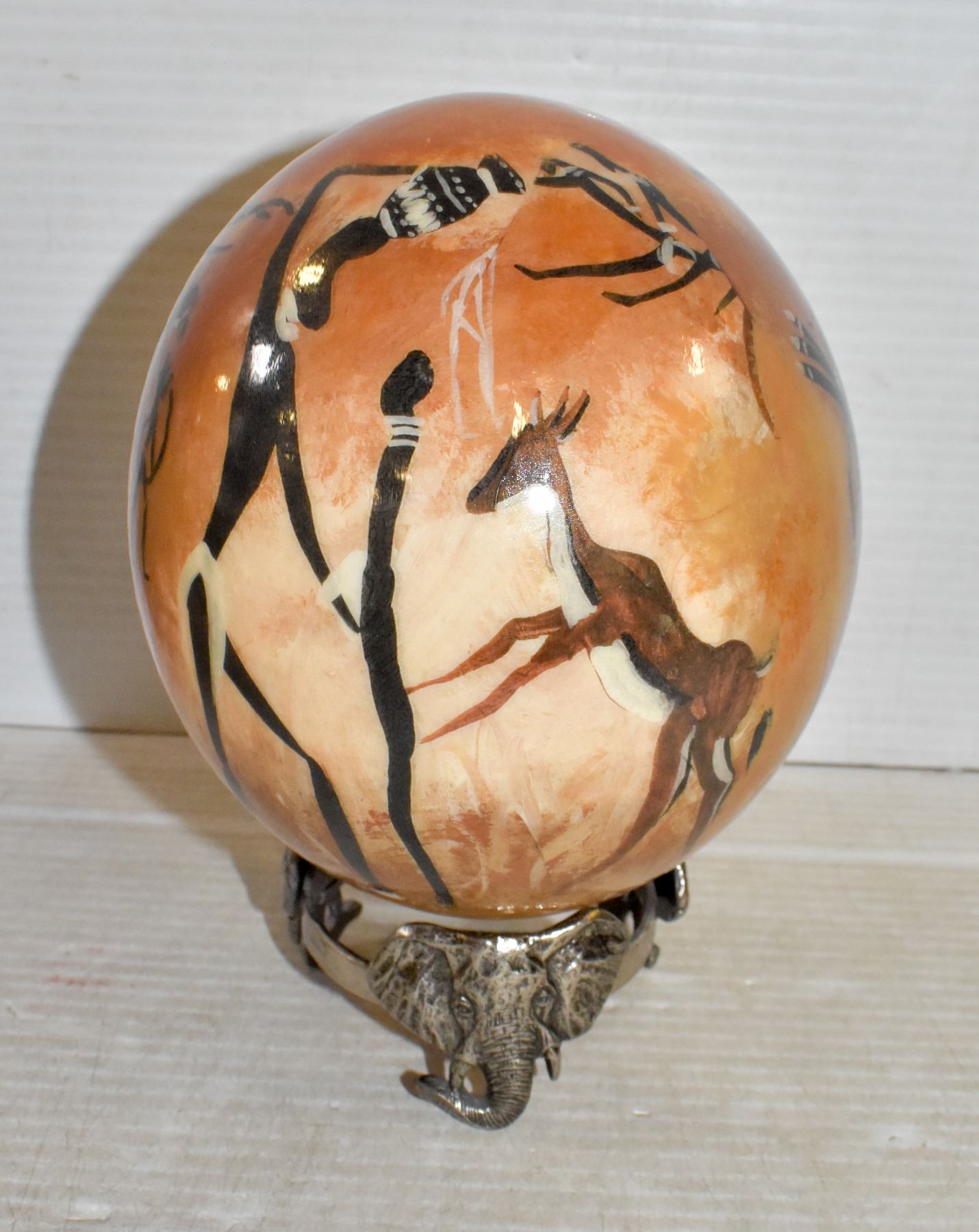 OSTRICH EGG HAND PAINTED ON METAL STAND