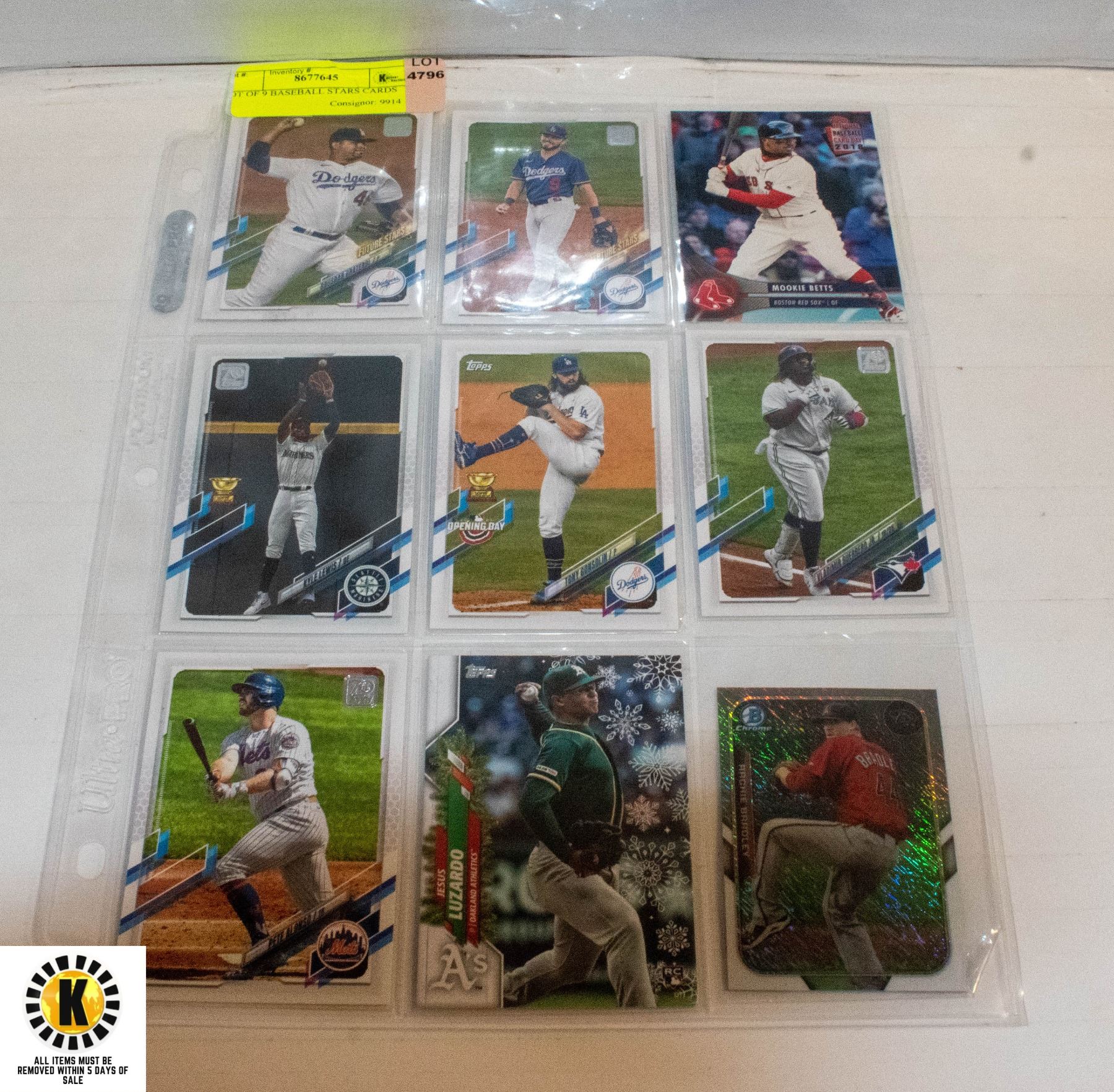 OT OF 9 BASEBALL STARS CARDS