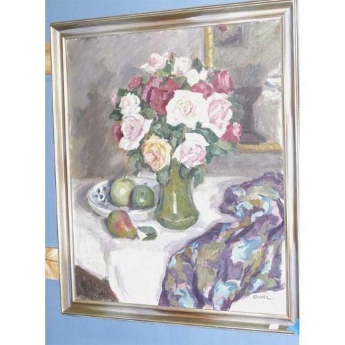 OTILDA WEIL, 28"x24" oil on canvas, Floral Still Life, CONDITION REPORT: no problems.