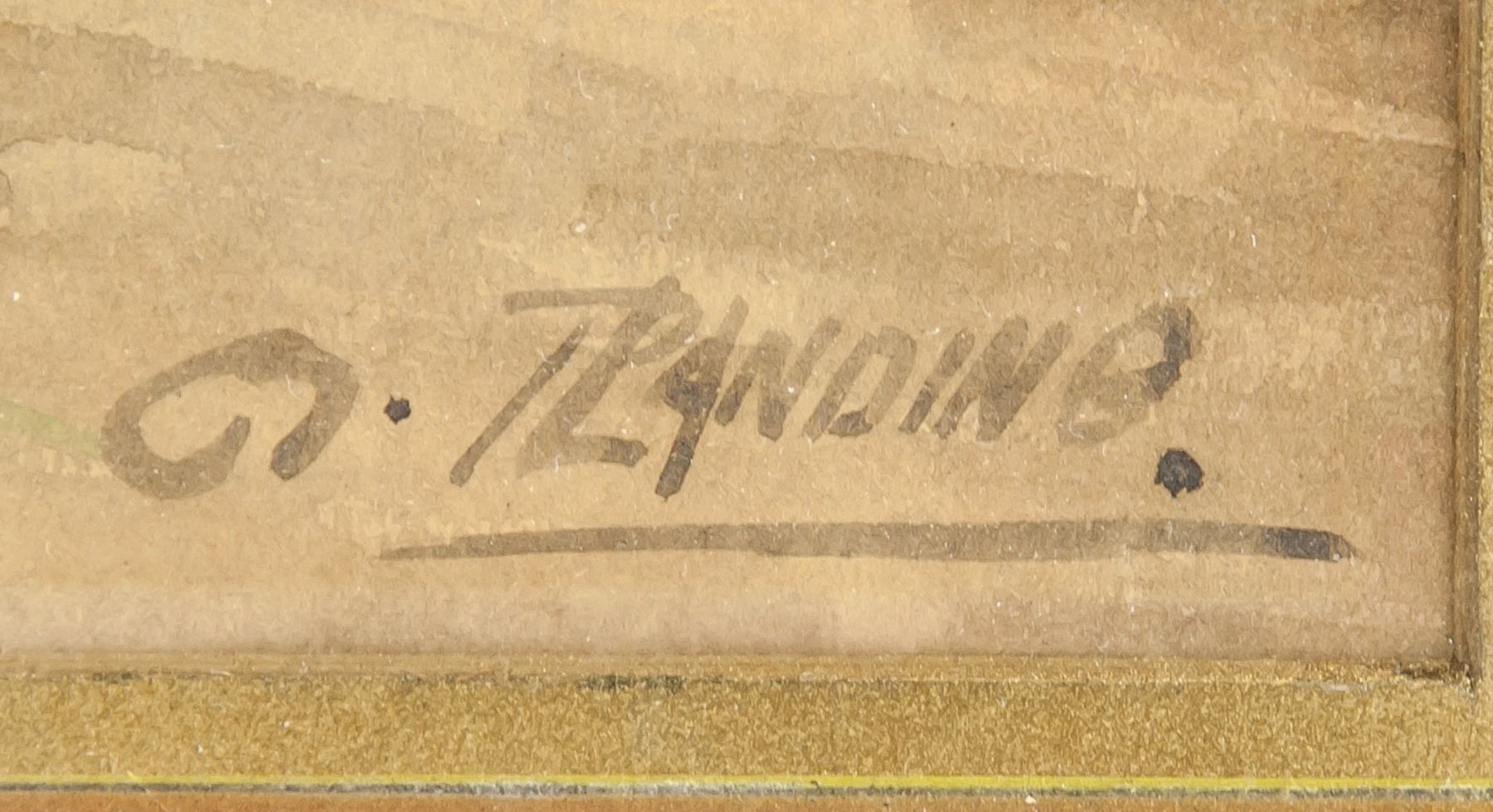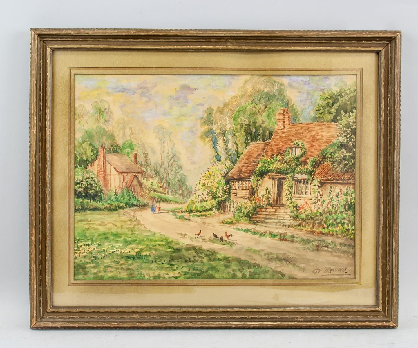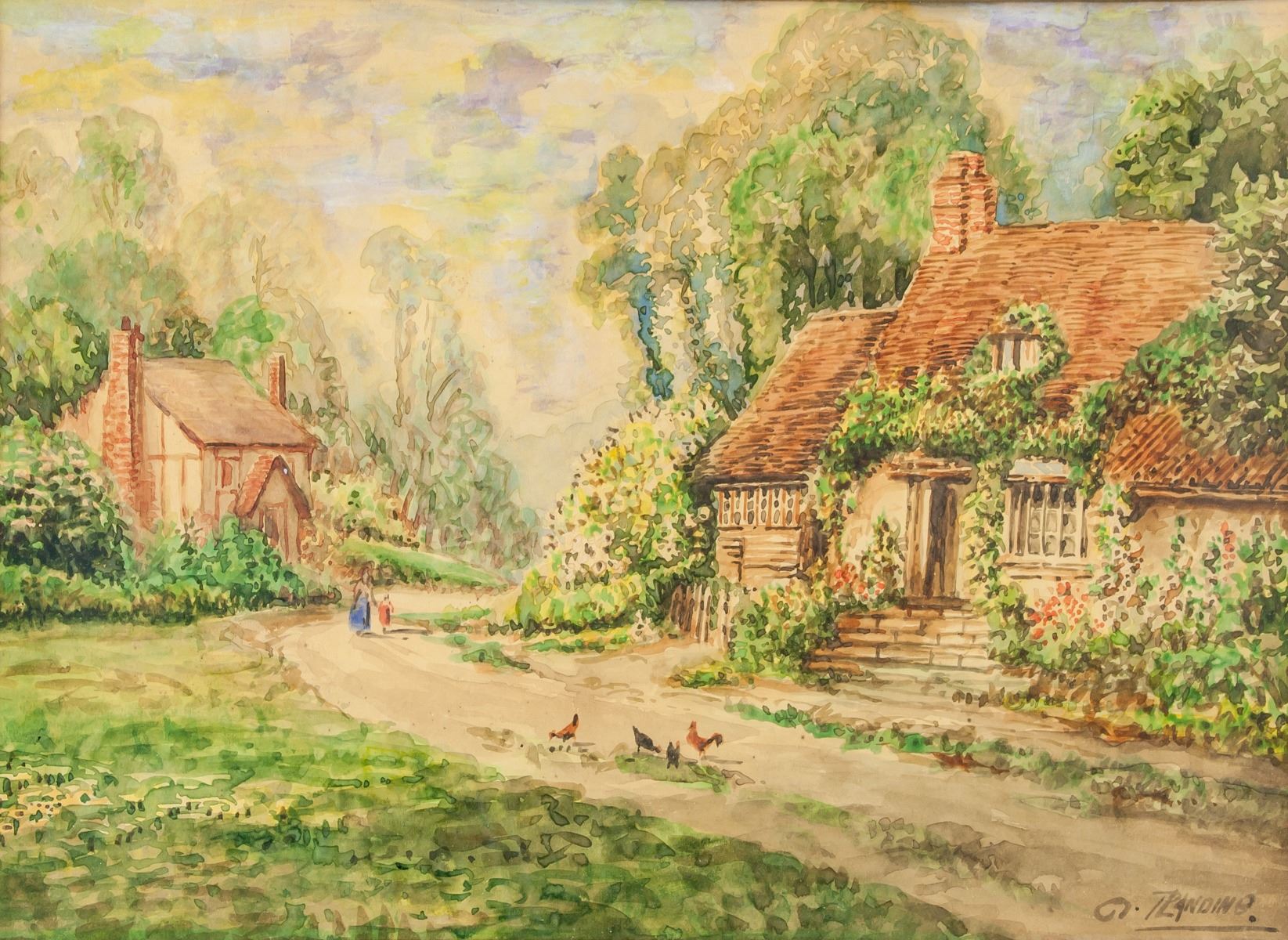 Watercolor on paper, framed. Featuring country landscape scene. Signed and attr. Otto Planding (Canadian, 1887-1964) on the lower right corner. 25 x 34.5 cm (9.8 x 13.6 inches).