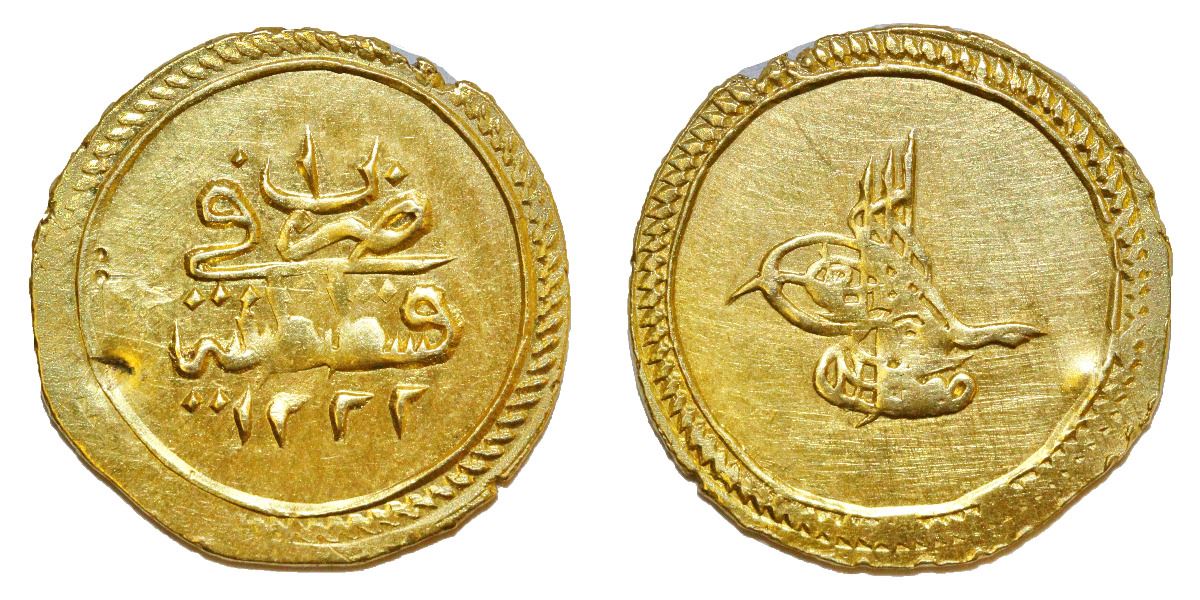 OTTOMAN: Mustafa IV, AV Altin (3.18g), Kostantiniye (Constantinople), AH 1222/1. Short-lived ruler. About uncirculated. Scarce.