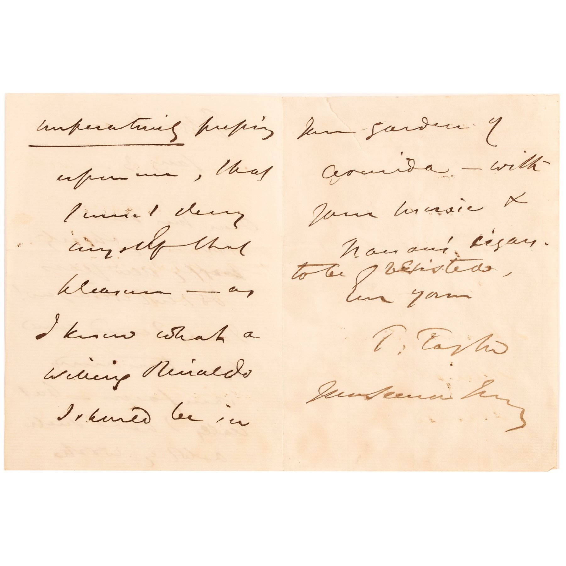 Prior album mounting traces on the back of the blank last page. Taylor’s handwriting is doctor-like, but his “T. Taylor” signature is bold, nice and clear. A Tom Taylor autograph signature is very scarce and a full ALS is even more rare.