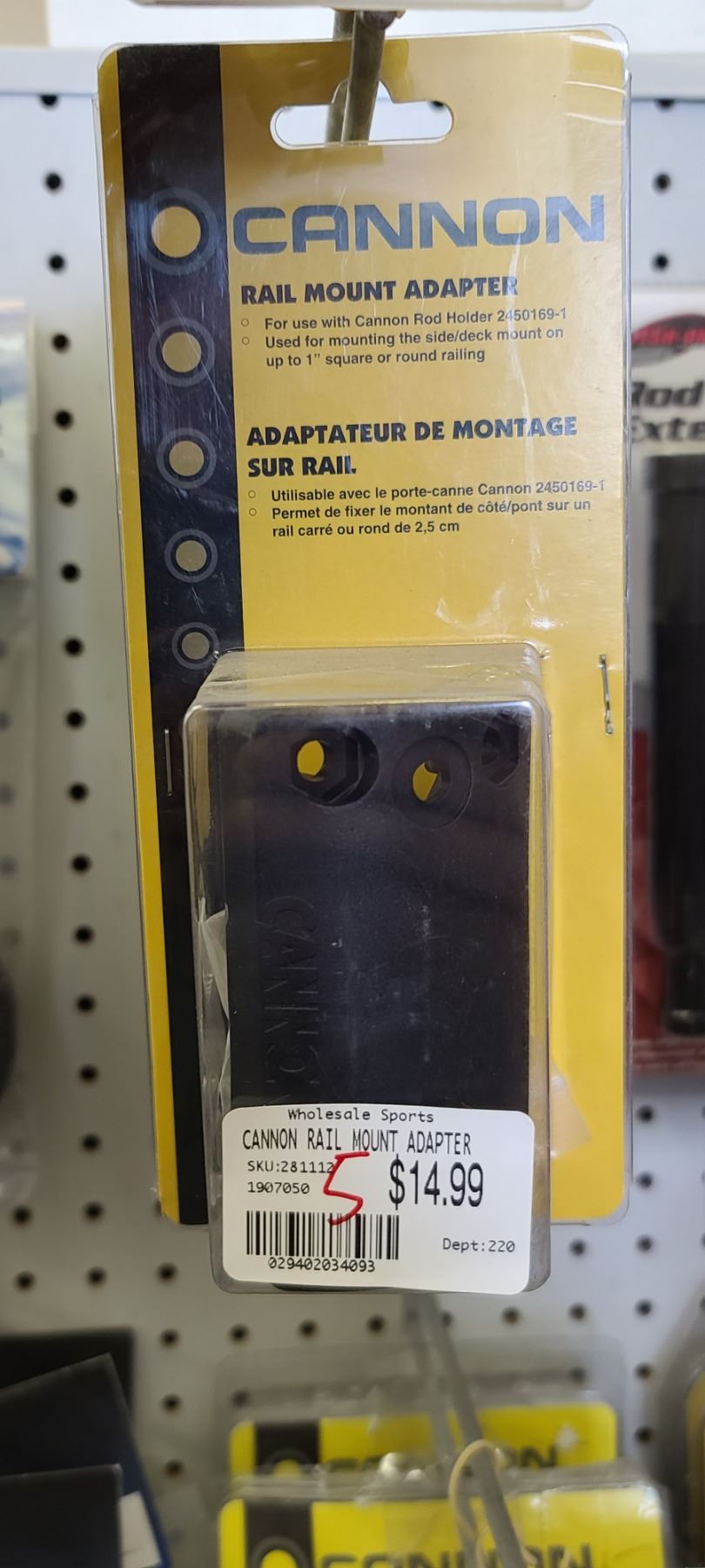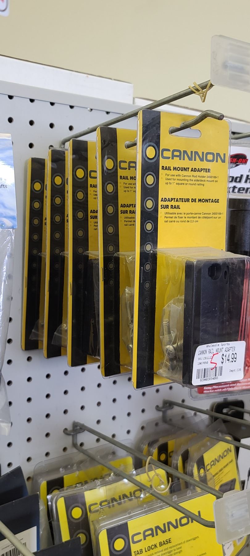 OUTCAST SMALL OAR STOP X6, CANNON RAIL MOUNT ADAPTER X5, FISH-ON 6" ROD EXTENSION HOLDER X4, LOWRANC