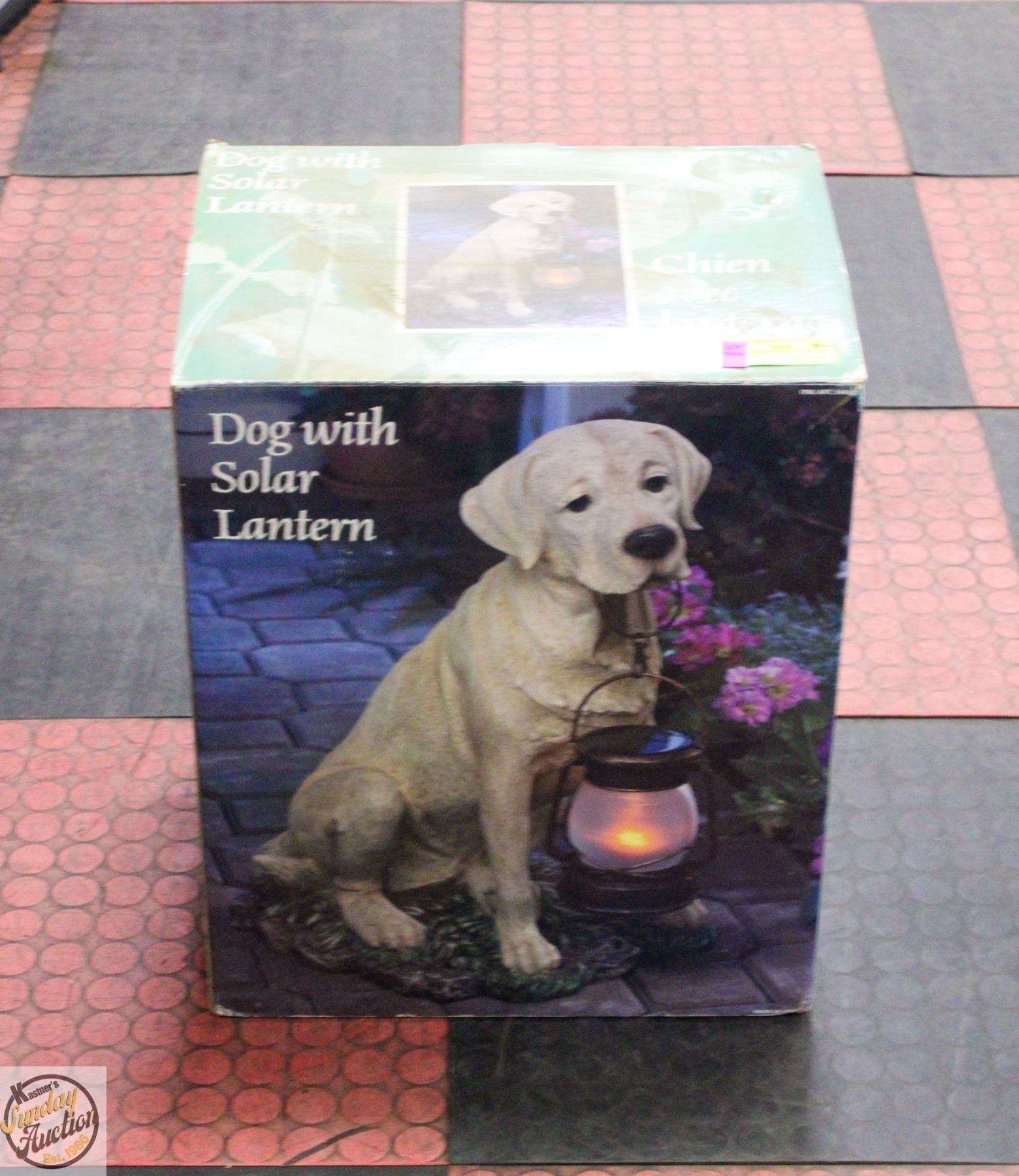 OUTDOOR DOG STATUE W/ SOLAR LANTERN IN BOX