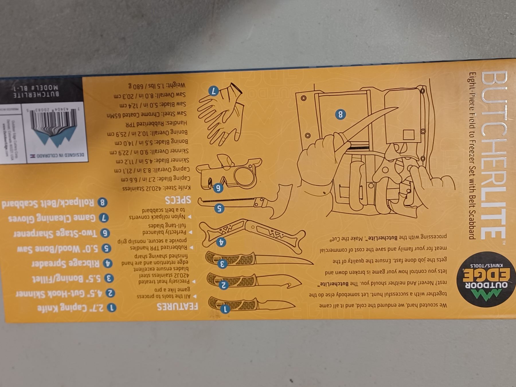 OUTDOOR EDGE BUTCHER LITE 8PCS FIELD TO FREEZER SET COMES WITH SCABARD