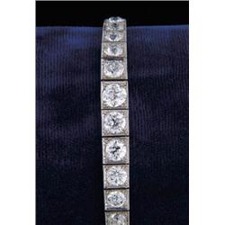 Lot 126 OUTSTANDING PLATINUM AND DIAMOND BRACELET Straight line design with tapering diamonds. Seventeen diamonds graduating in size from 1.05 to 0.39cts ( TW approx 7.86cts clarity VS2, color G-I) and fifty-two (twenty-two 2.7mm, twenty-two 1.7mm old European full cut and eight 1.5mm old European single cut clarity SI1 to I1, color G-I) diamond melees having a gross weight of 14.8 dwt. No makers mark but stamped “Platinum”. GIA appraisal accompanies lot. SIZE: 7” l. CONDITION: Repair to underside of bracelet, otherwise very good. 5-70826