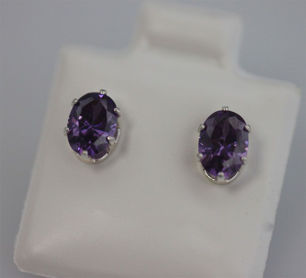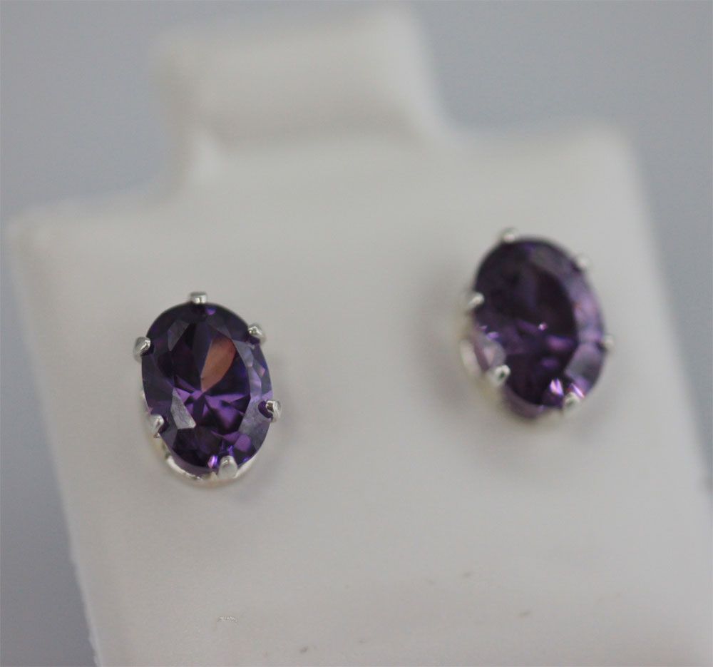 OVAL AMETHYST CZ STUD EARRINGS .925 STERLING SILVER **|**|** OVAL AMETHYST CZ STUD EARRINGS .925 STERLING SILVER ; MSRP: $0
