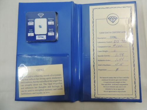 OVAL CUT BLUE OPAL GEM STOME .21 CARAT & GEM DATA CAERTIFICATE. AS SHOWN. VIEW PICTURE FOR DETAIL.