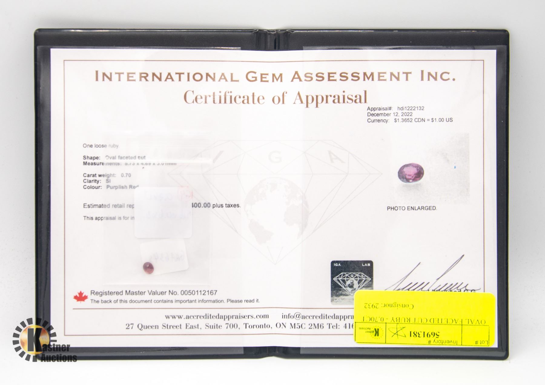 MEASURING 5.73 X 4.69 X 3.01MM. CLARITY SI, COLOR PURPLISH RED. COMES WITH APPRAISAL FROM INTERNATION GEM ASSESSMENT INC (APPRAISAL NUMBER HDI1222132) APPRAISED VALUE $2400.00 **ALL ITEMS MUST BE REMOVED BY 5PM SATURDAY, SEPTEMBER 2ND 2023. ALL REMAINING ITEMS WILL BE SUBJECT TO A $6.00 PER DAY STORAGE CHARGE. ANY ITEMS REMAINING AFTER MONDAY, SEPTEMBER 18TH, 2023 WILL BE CONSIDERED FORFEITED. NO REFUNDS WILL BE ISSUED FOR FORFEITED ITEMS. TO SCHEDULE A PICK UP APPOINTMENT CLICK HERE
