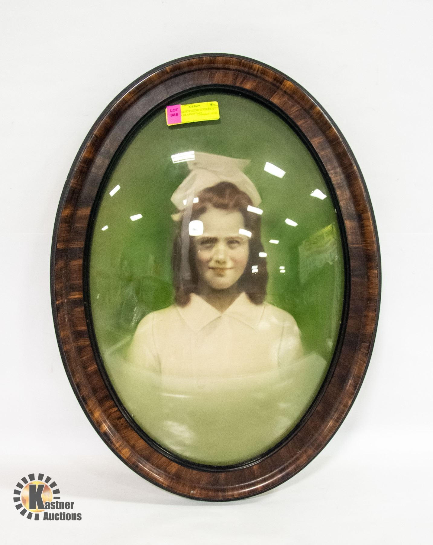 OVAL HAND COLORED PORTRAIT PHOTO, GLASS INTACT