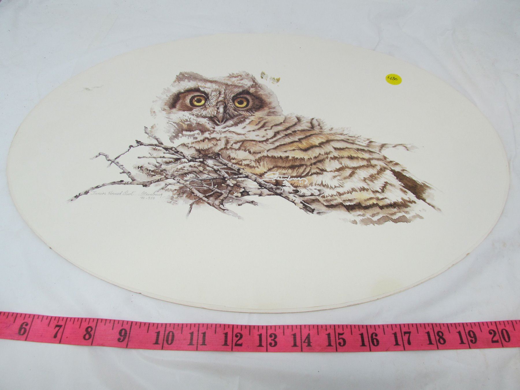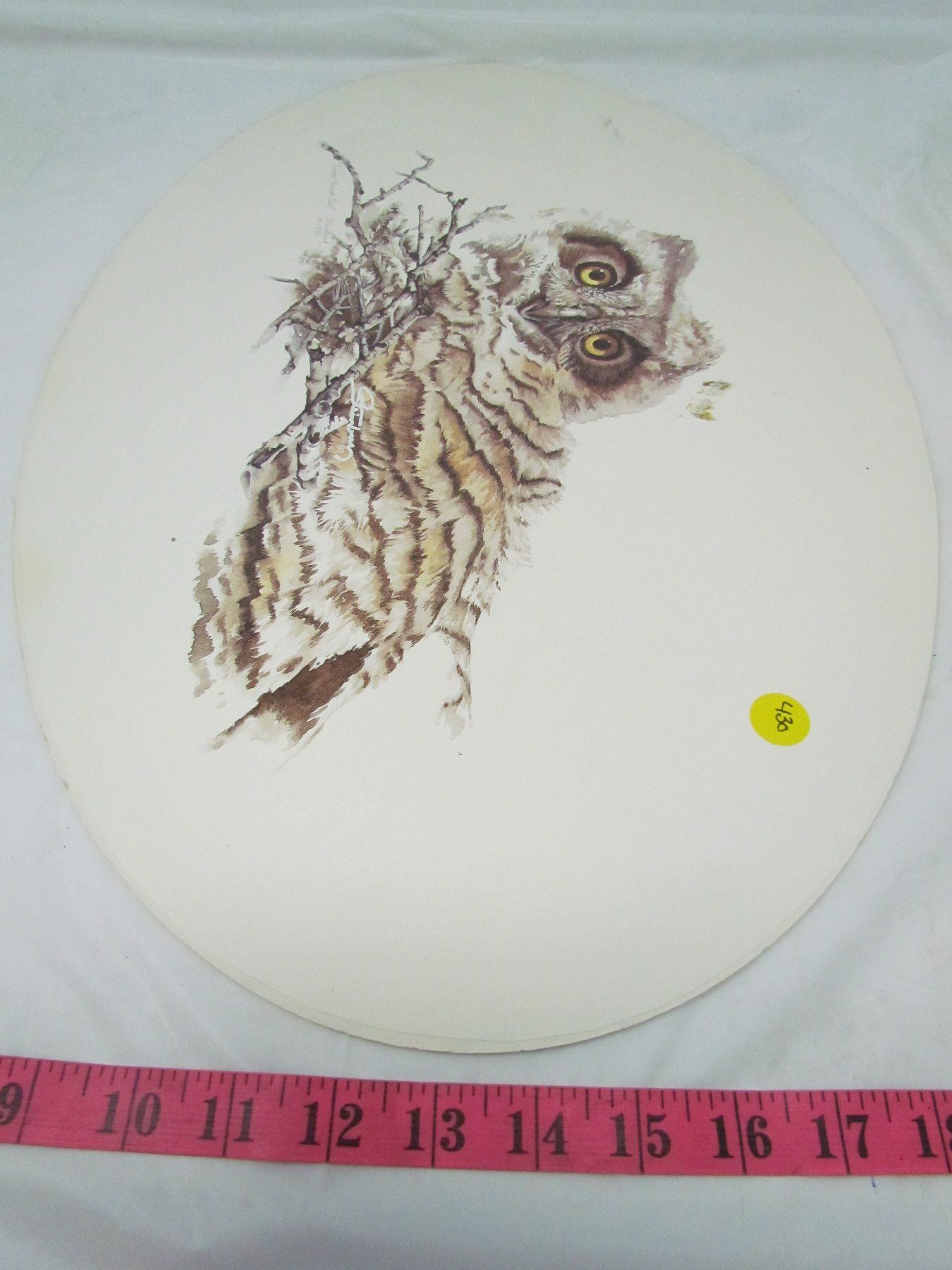 OVAL SHAPED PICTURE OF OWL (UNFRAMED) *JUNIOR HORNED OWL* (STEINBURG)