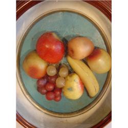OVAL WALNUT SHADOWBOX FRAME WITH FRUIT. 16" x 18"