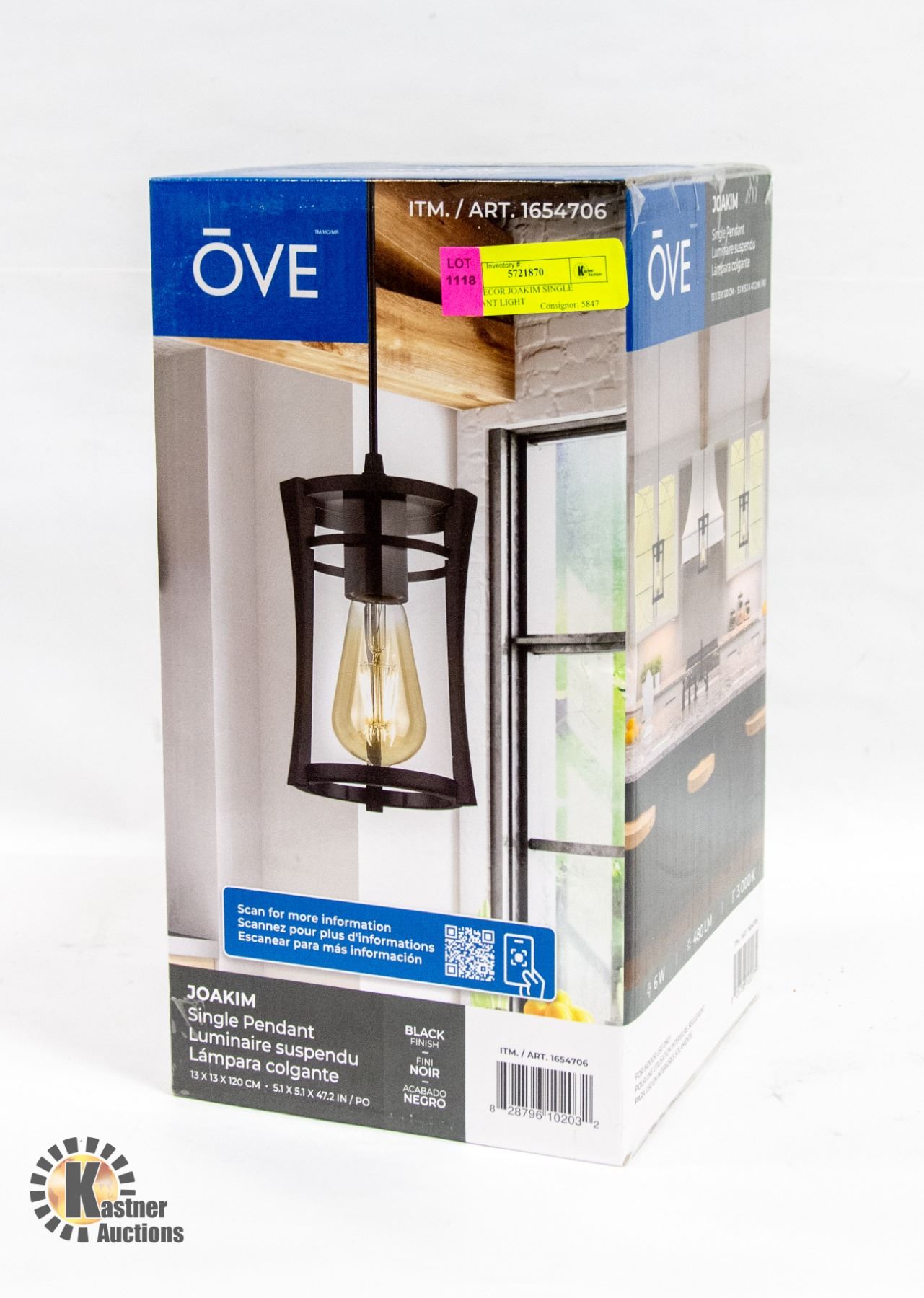 OVE DECORS JOAKIM PENDANT LIGHT BLACK PAINTED FINISH 1-LIGHT MINI PENDANT 3000 K AMBER-TINTED BULB **ALL ITEMS MUST BE REMOVED BY 5PM SATURDAY, NOVEMBER 4TH 2023. ALL REMAINING ITEMS WILL BE SUBJECT TO A $6.00 PER DAY STORAGE CHARGE. ANY ITEMS REMAINING AFTER MONDAY, NOVEMBER 18TH, 2023 WILL BE CONSIDERED FORFEITED. NO REFUNDS WILL BE ISSUED FOR FORFEITED ITEMS. TO SCHEDULE A PICK UP APPOINTMENT CLICK HERE